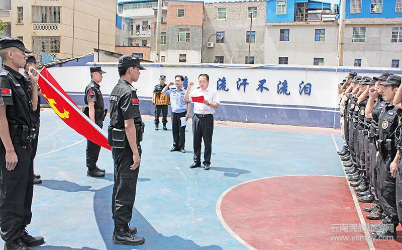 6月5日下午,元謀縣公安局黨委對(duì)元謀縣公安局飛馬突擊隊(duì)青年人才支部委員會(huì)進(jìn)行授牌。會(huì)上宣讀了《關(guān)于中共元謀縣公安局飛馬突擊隊(duì)支部委員會(huì)變更黨支部名稱請(qǐng)示的批復(fù)》;元謀縣公安局局長(zhǎng)丁志富帶領(lǐng)青年黨員們重溫入黨誓言。