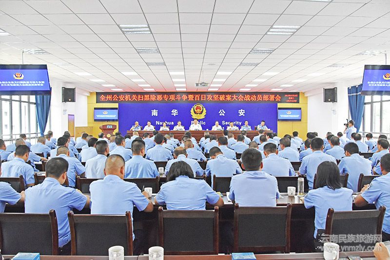 7月25日下午,楚雄州公安機(jī)關(guān)掃黑除惡專項(xiàng)斗爭暨百日攻堅(jiān)破案大會(huì)戰(zhàn)動(dòng)員部署會(huì)在南華縣公安局召開。楚雄州副州長、州公安局掃黑除惡專項(xiàng)斗爭領(lǐng)導(dǎo)小組組長、州公安局黨委書記、局長馬聞出席會(huì)議并講話,南華縣縣委書記李云升出席會(huì)議并致歡迎詞,會(huì)議由楚雄州公安局黨委委員、副局長張愛東主持。