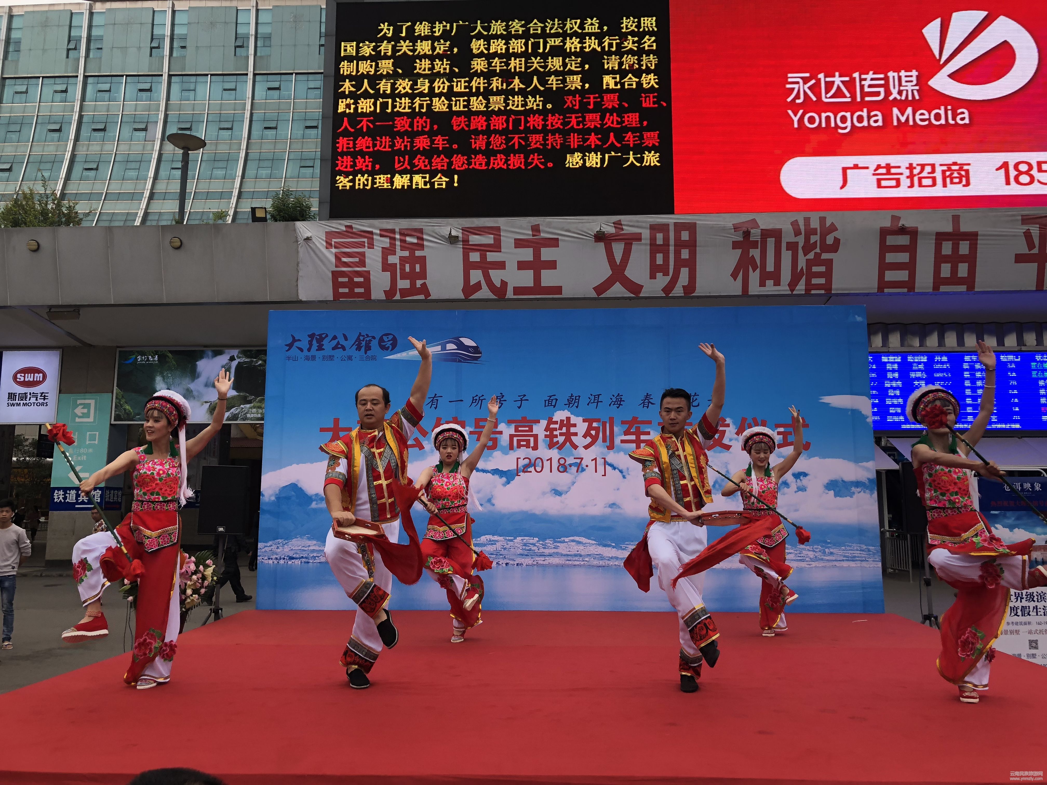 據(jù)了解,“大理公館號”列車由大理佳利集團冠名,隨車而行的大理佳利集團佳利藝術團金花阿鵬用頗具大理白族風情的歌舞,近距離的為旅客展示著大理的民族服飾以及大理這個能歌善舞民族的獨特魅力,為“大理公館號”上的乘客帶來不一樣的奇妙之旅。