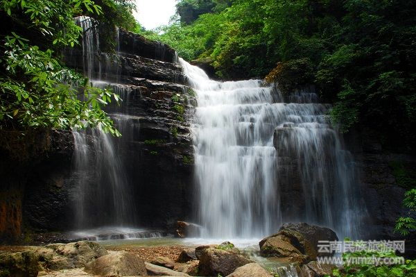 黃連河瀑布群景區(qū)位于大關縣城東南側(cè),距縣城5.5公里,總游覽面積42平方公里。景區(qū)以瀑布群為主,間有如夢如幻的云霧奇峰,威嚴的參天古木,鳥語花香的山林竹海,形似飛鴿的世界珍稀植物——珙桐,還有情濃似酒的苗寨風情。并且立體氣候顯著,有“一山分四季,十里不同天”之說,有南國的俊秀,又有北國的風光,山、水、林、洞融為一體,奇、秀、幽、雅構(gòu)成一幅引人入勝的山水畫卷。