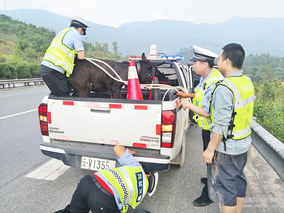 8月14日16時(shí)許,昆楚交警大隊(duì)大紅田警區(qū)接到過路駕駛?cè)藞?bào)警,稱在昆楚高速公路恐龍山服務(wù)區(qū)路段右側(cè)車道上有一頭毛驢,橫站在路上,一動(dòng)不動(dòng),十分危險(xiǎn)。