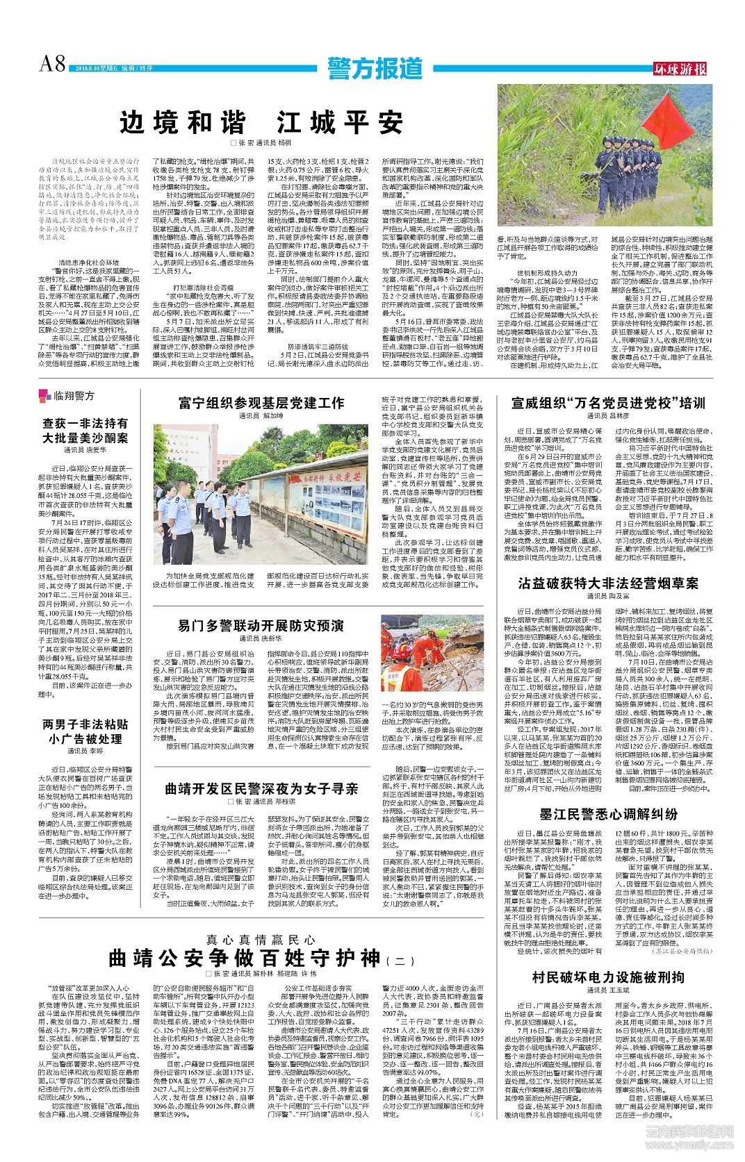 針對邊境地區(qū)治安環(huán)境復(fù)雜的場所,治安、特警、交警、出入境和派出所民警結(jié)合日常工作,全面排查可疑人員、物品、車輛、事件,及時發(fā)現(xiàn)掌控重點人員、三非人員,及時清繳槍爆物品、毒品、管制刀具等各類違禁物品;查獲并遣返非法入境的老撾籍16人、越南籍9人、緬甸籍2人。抓獲網(wǎng)上逃犯6名,遣返非法務(wù)工人員53人。