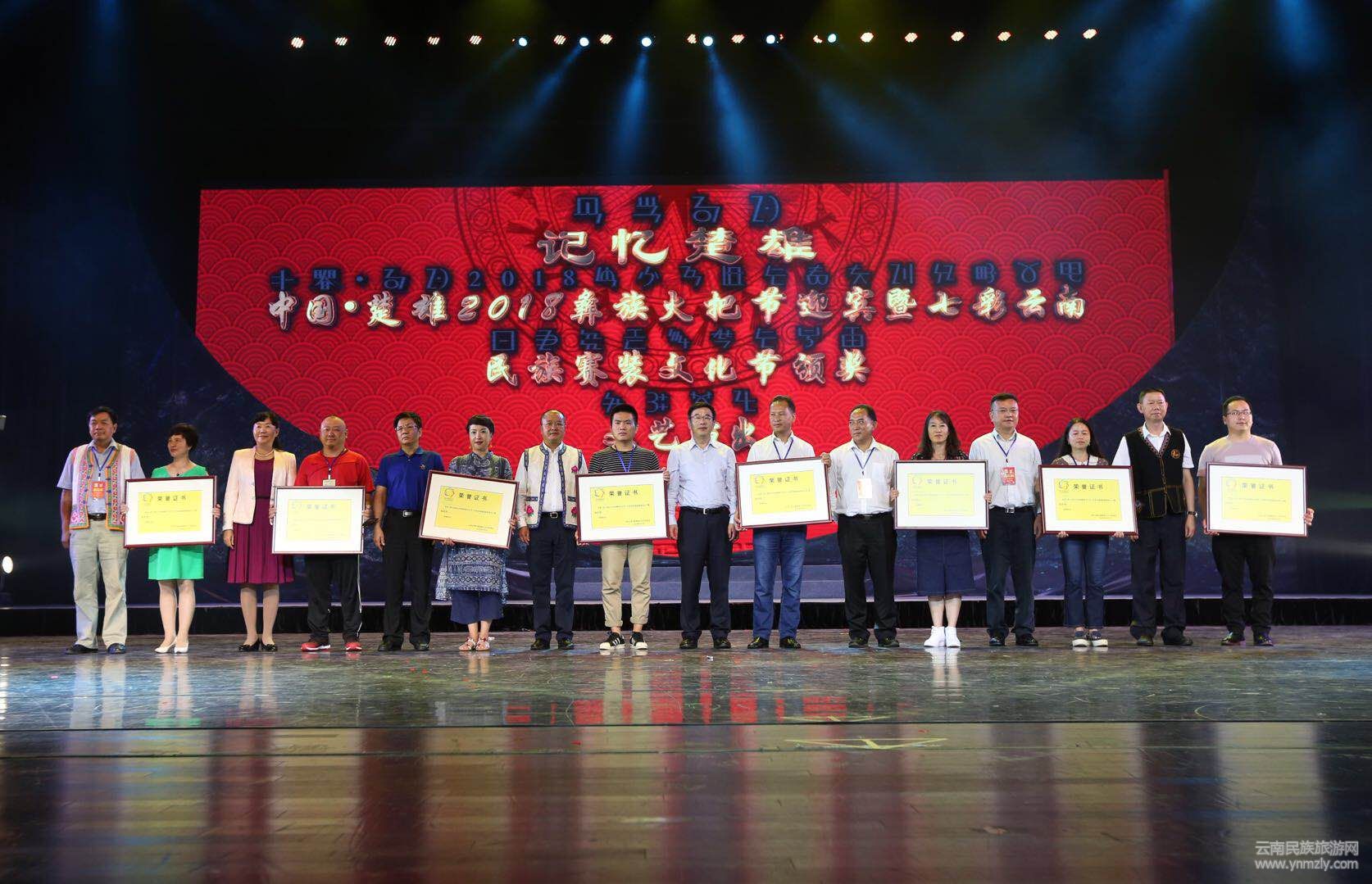 七彩云南2018民族賽裝文化節(jié)頒獎(jiǎng)暨中國(guó)·楚雄彝族火把節(jié)迎賓文藝演出在楚雄彝州大劇院舉行。云南民族服裝服飾設(shè)計(jì)大賽經(jīng)過(guò)3天競(jìng)技圓滿(mǎn)落幕,評(píng)選出十佳傳統(tǒng)民族服裝服飾、十佳創(chuàng)意民族服裝服飾、十佳民族服裝服飾設(shè)計(jì)師、十佳民間刺繡(布藝)能手四個(gè)別類(lèi)的獎(jiǎng)項(xiàng)及8個(gè)組織獎(jiǎng)、8個(gè)優(yōu)秀組織獎(jiǎng)。