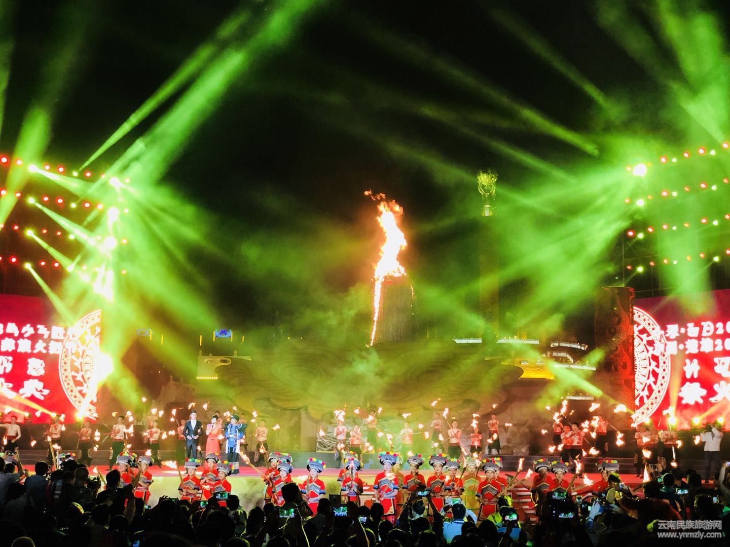 每年的農(nóng)歷六月二十四日,火把節(jié)之夜楚雄的各民族都在同一地域慶祝,從山寨到城鎮(zhèn),從高山到平壩,人人燃起火把,手拉手足跟足圍成圈子載歌載舞,祈望年年五谷豐登,六畜興旺,歌唱美好的生活。