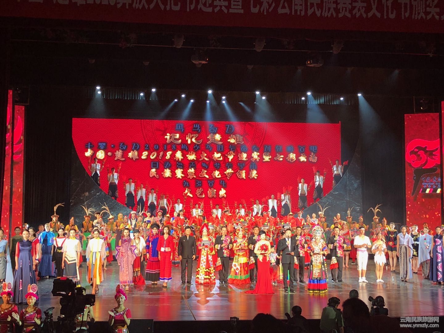 4日晚,七彩云南2018民族賽裝文化節(jié)頒獎(jiǎng)暨中國·楚雄彝族火把節(jié)迎賓文藝演出在楚雄彝州大劇院舉行。