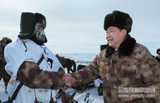 2014年1月26日,習近平來到祖國邊疆的內(nèi)蒙古阿爾山,冒著零下30多度的嚴寒慰問在邊防線上巡邏執(zhí)勤的官兵。來源:新華社