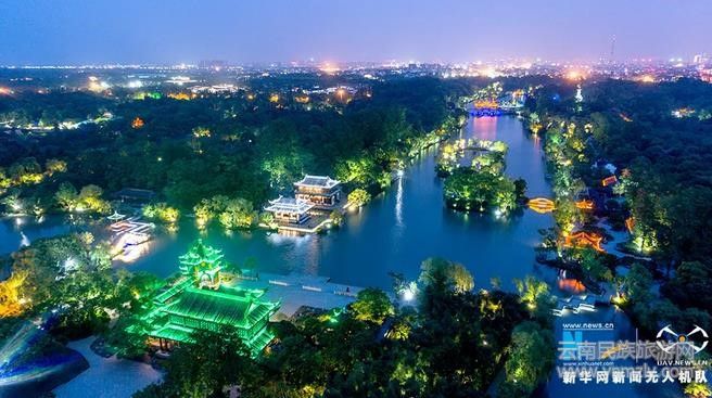 長江沿線的揚州瘦西湖夜景。(來源:新華網(wǎng))