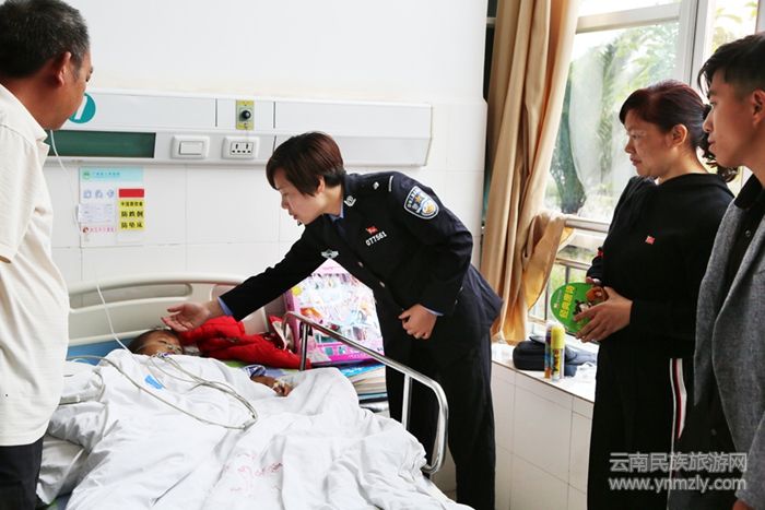 不僅如此,兩個(gè)細(xì)心的民警心里也早盤(pán)算好,怎樣幫小燕子解決看病的花費(fèi)問(wèn)題。當(dāng)晚6時(shí),兩位民警開(kāi)車(chē),帶“小燕子”及家人趕往廣南縣人民醫(yī)院。