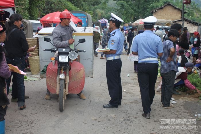 每到一個(gè)街天,“趕集警組”都用少數(shù)民族群眾能聽得懂的語言,以案說法,教育廣大群眾抵制各類道路交通違法行為。引導(dǎo)群眾自覺遵守道路交通安全法,從源頭上消除道路交通安全隱患。