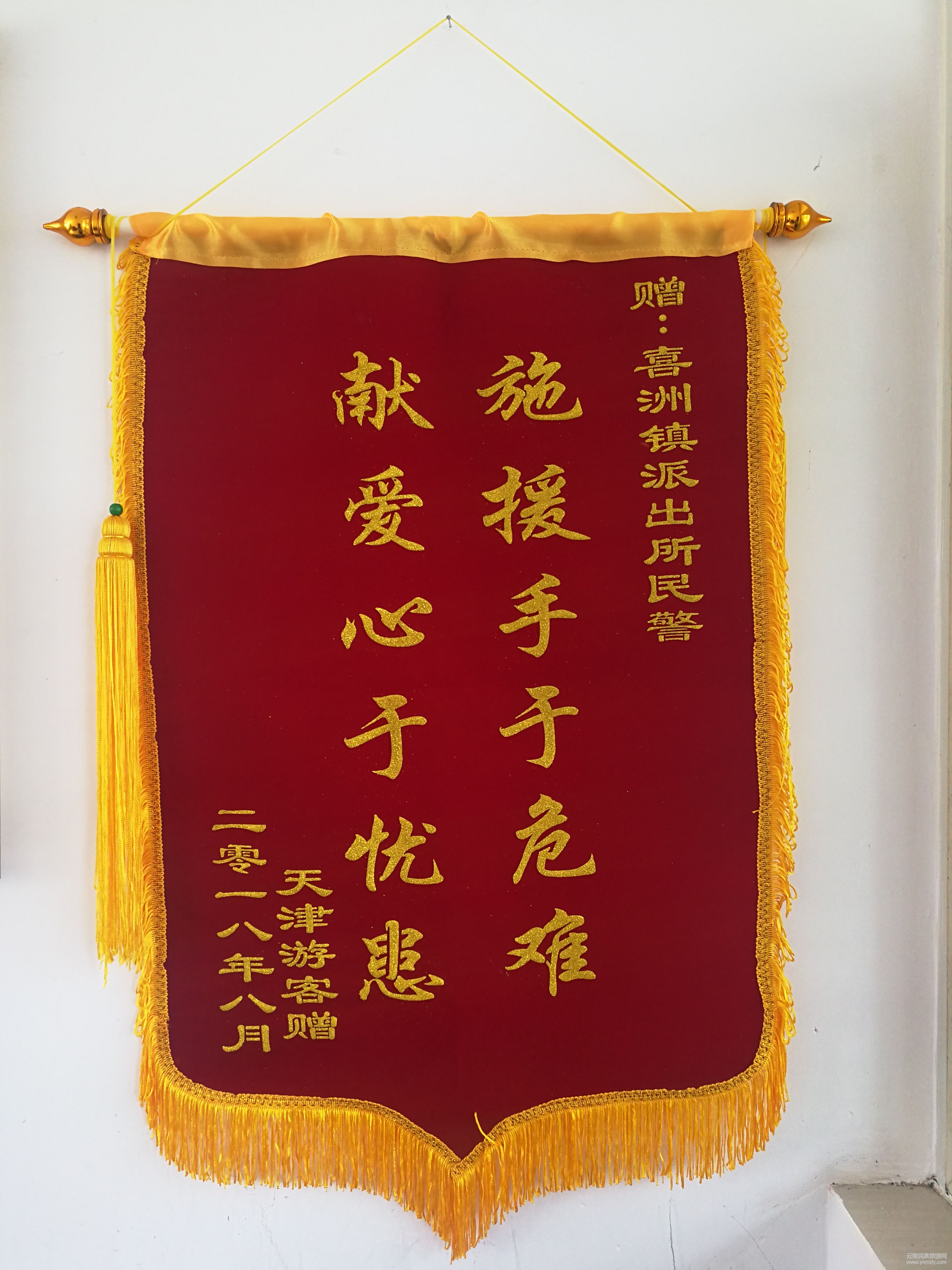 8月30日,大理市公安局喜洲派出所收到一件快遞,快遞內(nèi)裝著“施援手于危難 獻(xiàn)愛(ài)心于憂患”字樣的一面錦旗。