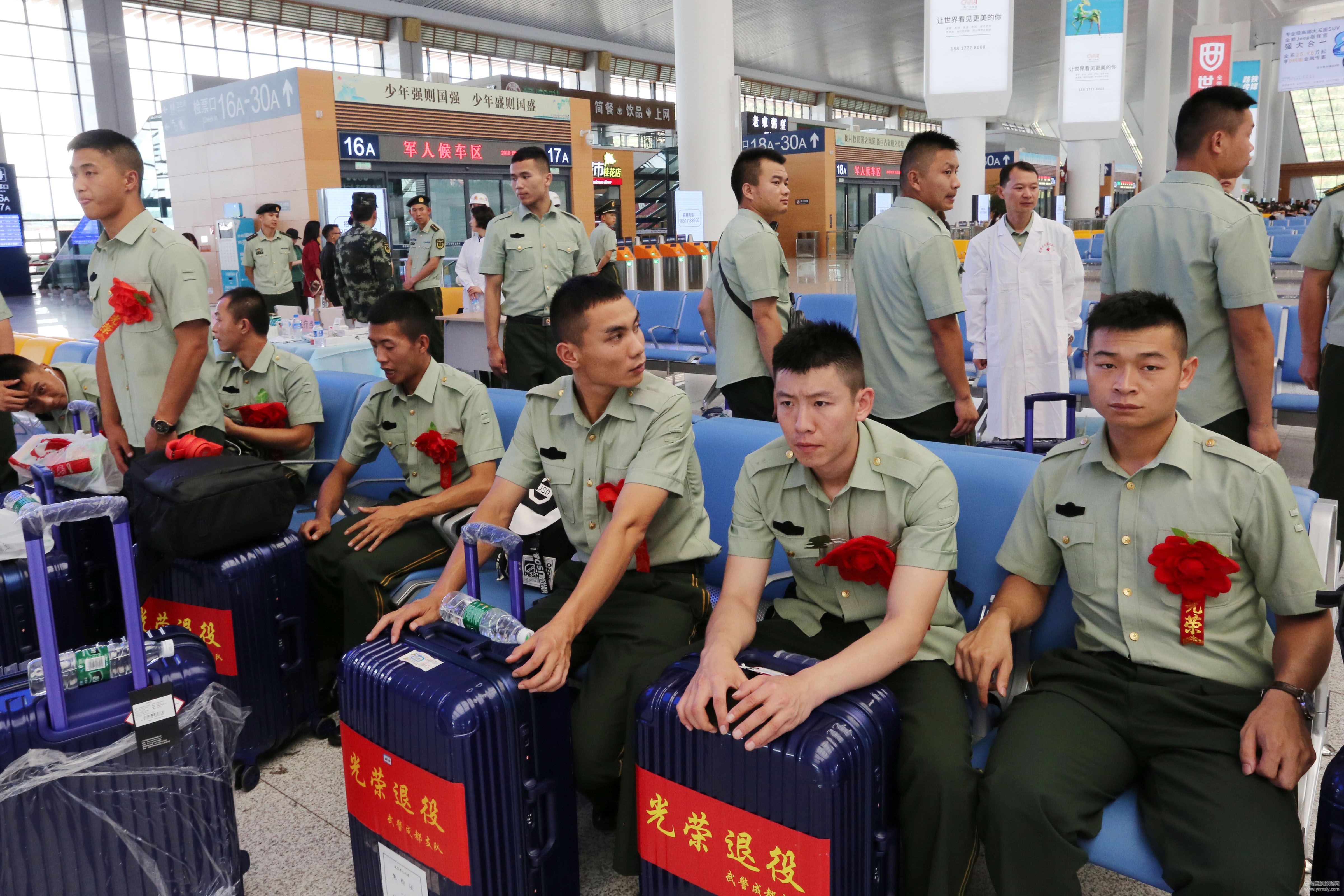 9月1日,武警云南省總隊3000余名2013年和2016年夏秋季入伍的“一征兩退”首批初級士官、義務兵等退伍老兵,在昔日一起學習、訓練、生活的戰(zhàn)友們簇擁歡送下,分別搭乘飛機、高鐵、火車等交通工具,依依踏上回鄉(xiāng)的路程。