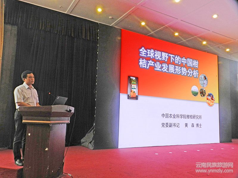 中國農(nóng)科院柑橘研究所博士、黨委副書記、紀(jì)委書記、咨詢中心常務(wù)副主任、重慶市科技特派員協(xié)會副理事長、重慶北碚國家大學(xué)科技園柑橘所分園主任黃森作了專題報告《中國柑橘產(chǎn)業(yè)發(fā)展形勢分析》。