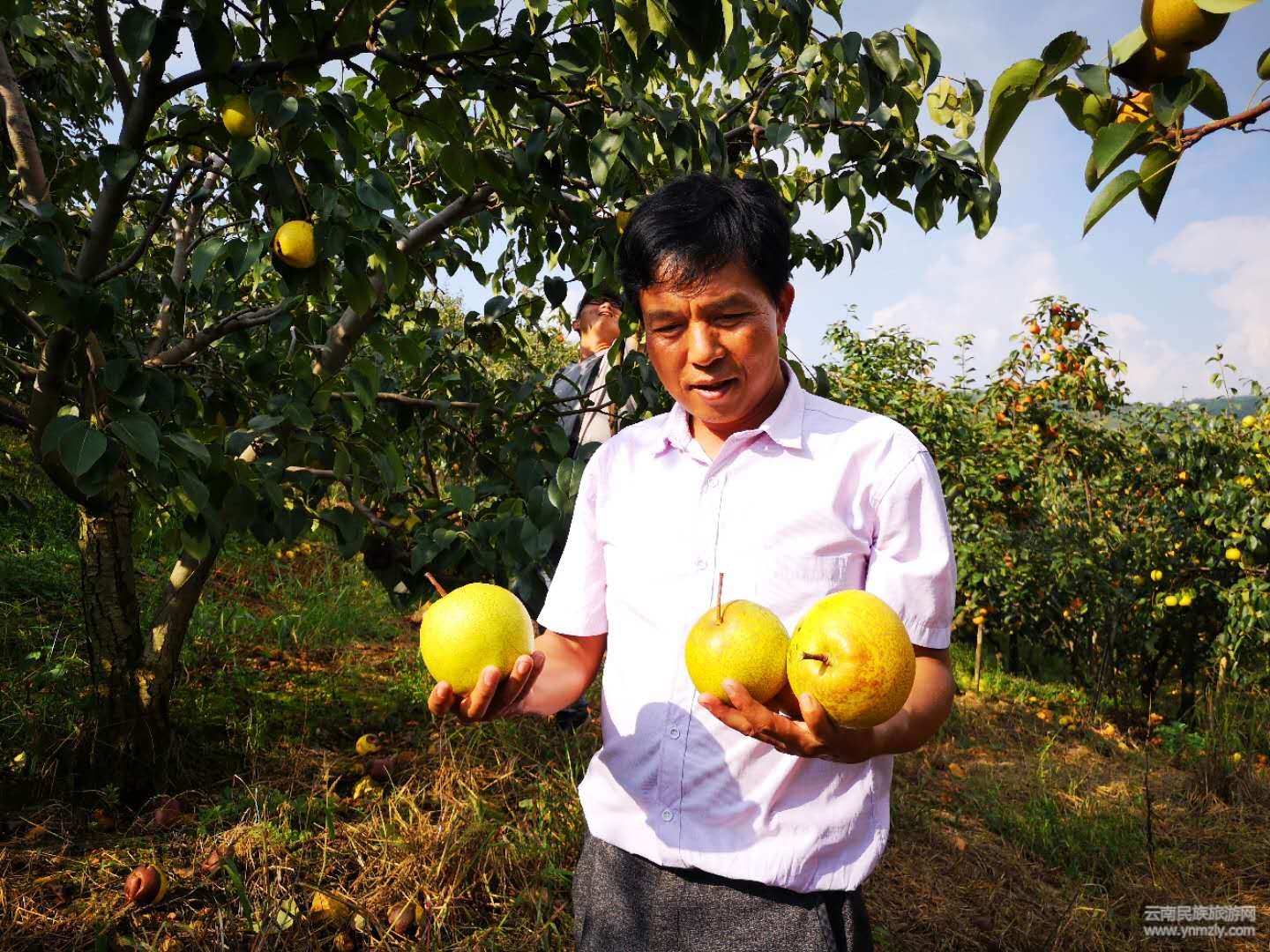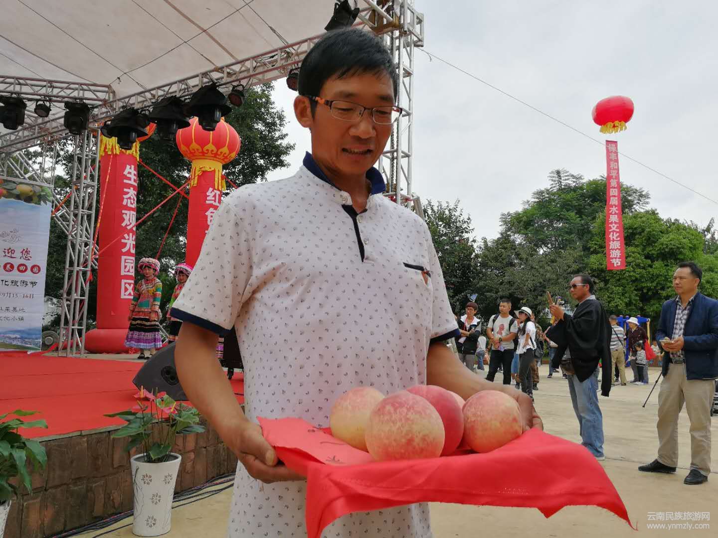 開幕式上,由漢族、彝族、苗族等各族人民帶來的文藝演出異彩紛呈,歌曲動聽,舞蹈優(yōu)美。別開生面的“梨王”“桃王”評比活動,吸引了無數(shù)游客。在和平鎮(zhèn)文化廣場上,削梨、吃梨比賽及各種趣味互動游戲正在進行,來自各地的游客和當?shù)卮迕駛円黄饏⑴c其中,盡情享受節(jié)日的歡樂。游戲結(jié)束,游客在果農(nóng)的帶領(lǐng)下親臨果園,一邊體驗水果采摘樂趣,一邊欣賞生態(tài)和平的果園風(fēng)光。