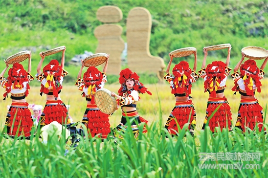 9月21日上午,一場(chǎng)大型田園實(shí)境演出《秋收禮祭》在廣南縣八寶鎮(zhèn)首演。作為云南春晚傳媒有限公司獨(dú)家策劃的廣南2018世界稻作文化旅游節(jié)系列活動(dòng)之一,《秋收禮祭》表演與稻田相互映襯,祭禮、稻谷生長(zhǎng)、收獲、品嘗,一系列活動(dòng)通過(guò)舞臺(tái)表演與民眾實(shí)景展現(xiàn)融為一幅美麗畫(huà)卷,深刻展現(xiàn)出廣南的人杰地靈,山美水美,還原壯族原生態(tài)的民族民間元素,綜合體現(xiàn)出廣南的稻作文化以及廣南人民辛勤勞作、熱情好客的風(fēng)貌。本報(bào)記者 陳飛 攝