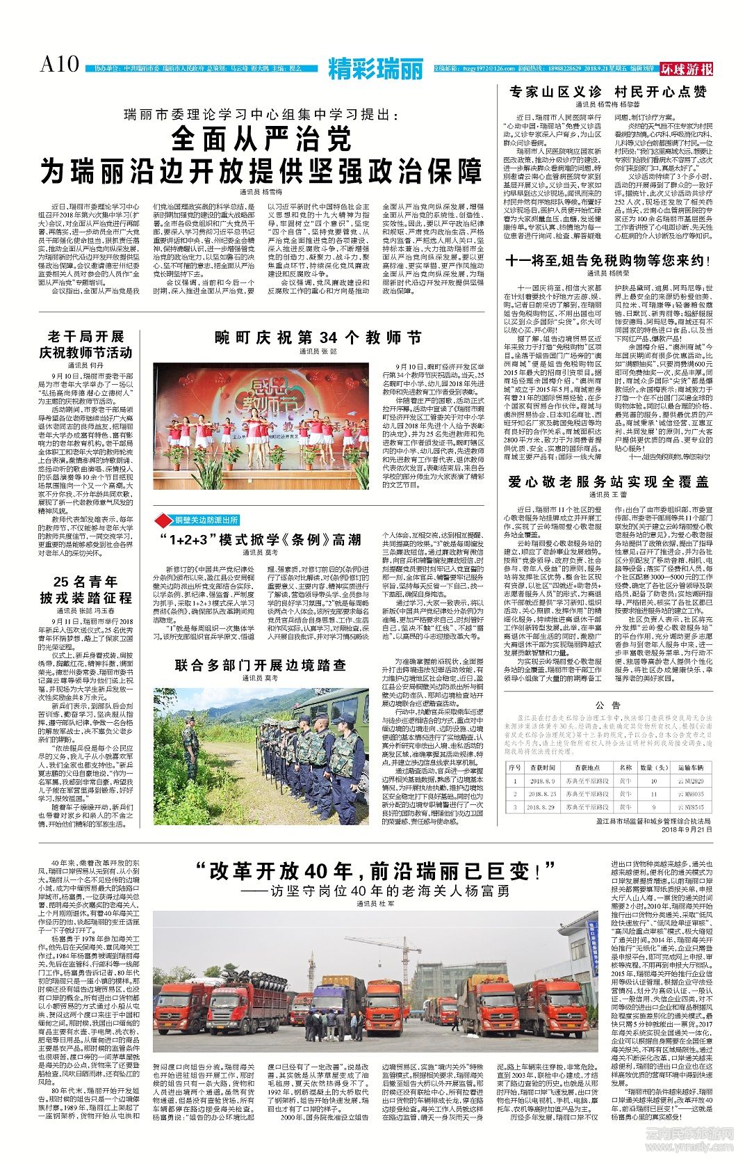 伴隨著莊嚴(yán)的國歌,活動正式拉開序幕。活動中宣讀了《瑞麗市畹町經(jīng)濟(jì)開發(fā)區(qū)工管委關(guān)于對中小學(xué)幼兒園2018年先進(jìn)個人給予表彰的決定》,并為25名先進(jìn)教師和先進(jìn)教育工作者頒發(fā)證書。畹町轄區(qū)內(nèi)的中小學(xué)、幼兒園代表,先進(jìn)教師和先進(jìn)教育工作者代表,退休教師代表依次發(fā)言。表彰結(jié)束后,來自各學(xué)校的部分師生為大家表演了精彩的文藝節(jié)目。(文章來源環(huán)球游報2018年9月21日第1158期A10版)