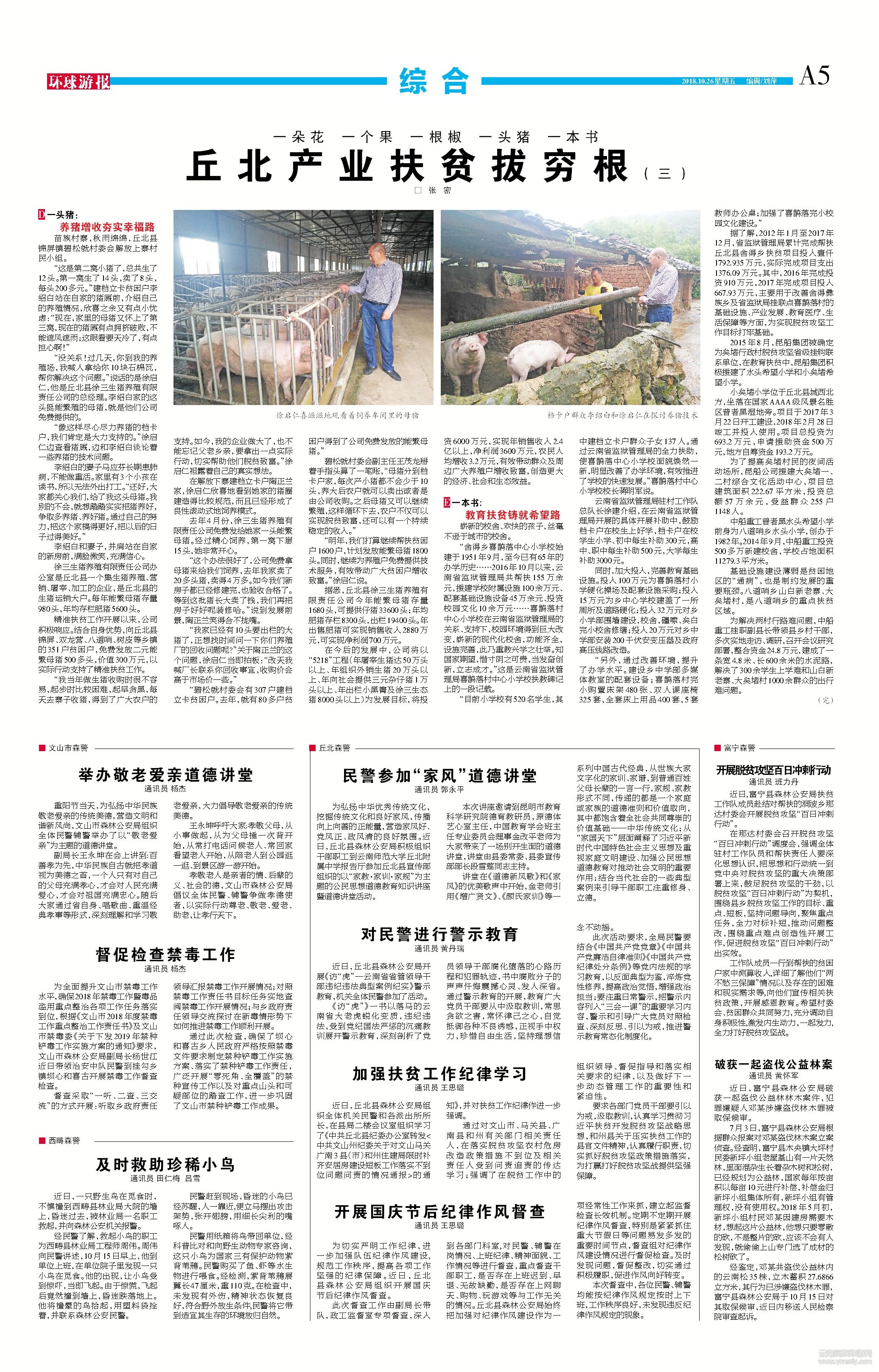“沒(méi)關(guān)系!過(guò)幾天,你到我的養(yǎng)殖場(chǎng),我喊人拿給你10塊石棉瓦,幫你解決這個(gè)問(wèn)題。”說(shuō)話的是徐啟仁,他是丘北縣徐三生豬養(yǎng)殖有限責(zé)任公司的總經(jīng)理。李紹白家的這頭挺能繁殖的母豬,就是他們公司免費(fèi)提供的。