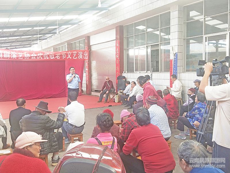 為增強老年人的防盜防騙意識,在重陽節(jié)來臨之際,易門縣公安局龍泉派出所民警為轄區(qū)觀看文藝演出的老人們送去了一堂防盜防騙的安全知識講座。