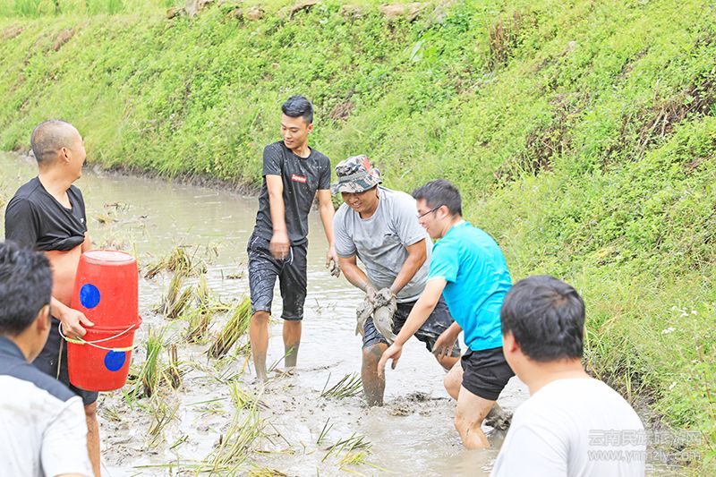 稻花魚文化節(jié)在歌舞節(jié)目《開門紅》的表演中拉開序幕。精彩的表演贏得游客陣陣喝彩。在捕魚大賽現(xiàn)場,秋風送來縷縷稻香。賽事一開始,男女老幼分成紅、黃兩隊下田捉魚,場面非常熱鬧。田坎上圍觀的游客也樂得合不攏嘴。
