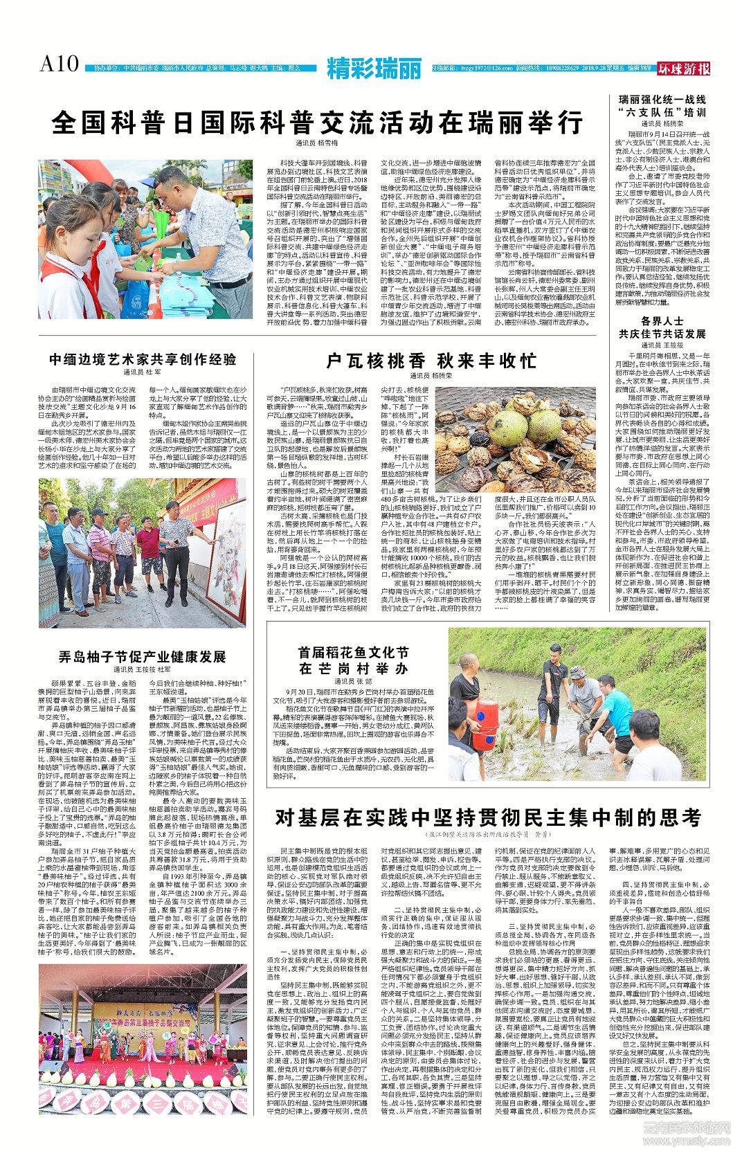茶話會上,相關(guān)領(lǐng)導(dǎo)通報了今年以來瑞麗市經(jīng)濟社會發(fā)展情況,分析了當前面臨的形勢和今后的工作方向。會議指出,瑞麗正處在建設(shè)“創(chuàng)新創(chuàng)業(yè)、生態(tài)宜居的現(xiàn)代化口岸城市”的關(guān)鍵時期,離不開社會各界人士的關(guān)心、支持和參與。市委、市政府領(lǐng)導(dǎo)希望,全市各界人士在服務(wù)發(fā)展大局上體現(xiàn)新作為、在促進社會和諧上開創(chuàng)新局面、在推進民主協(xié)商上展示新氣象、在加強自身建設(shè)上樹立新形象,同心同德、振奮精神、求真務(wù)實、竭智盡力,描繪家鄉(xiāng)更加絢麗的畫卷,譜寫瑞麗更加輝煌的篇章。(文章來源環(huán)球游報2018年9月28日第1159期A10版)