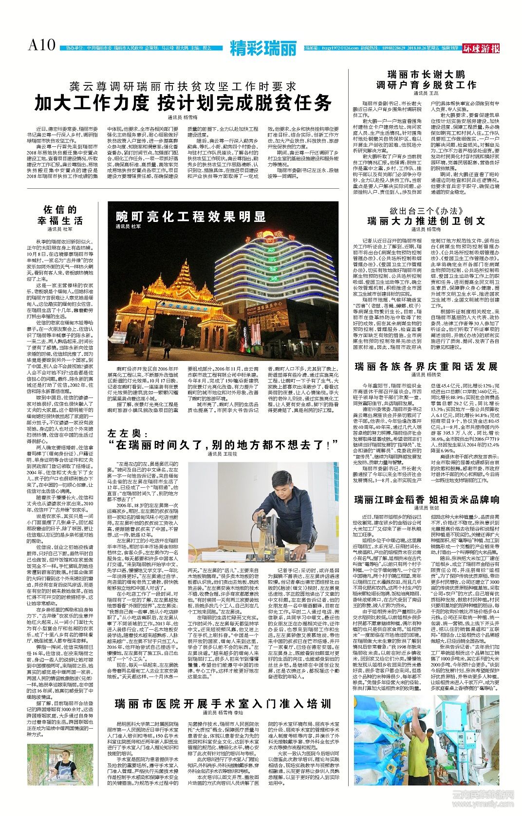 城市亮了,畹町人民的生活品質(zhì)也提高了。市民李大爺告訴記者,畹町人口不多,尤其到了晚上,街道顯得有些冷清,通過實(shí)施亮化工程,讓畹町一下子有了生氣,大家晚上都喜歡出來散步了,看看這美麗的夜景,讓人心情愉悅。李大爺?shù)睦习閮簞t說,通過實(shí)施亮化工程,讓人更有安全感,腳下的路看得更清楚了,真是利民的好工程。(文章來源環(huán)球游報(bào)2018年10月26日第1161期A10版)