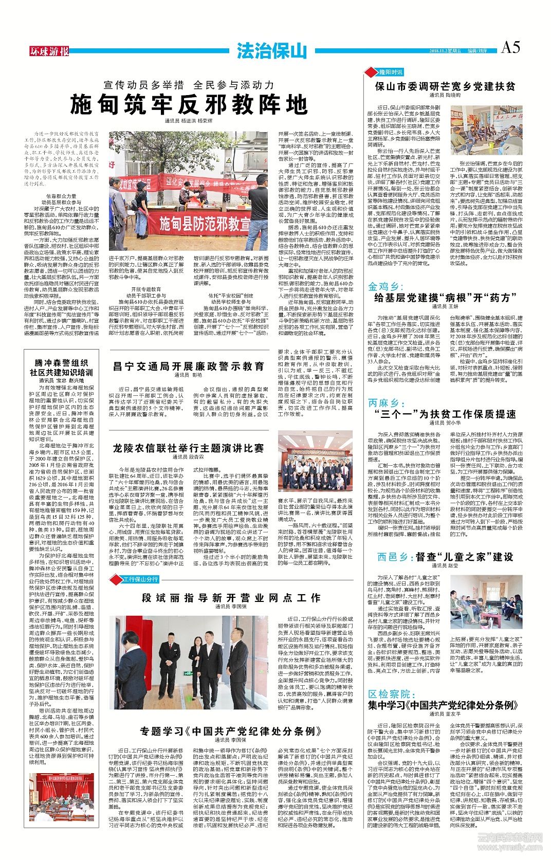 近年施甸縣,反邪宣教同舉,動員全民參與,充分激發(fā)社會各方力量,不斷探索新形勢下基層反邪教斗爭的新策略和新方法,基層防邪反邪的各項工作扎實有限,營造了和諧穩(wěn)定的社會環(huán)境。(文章來源環(huán)球游報2018年11月2日第1162期A5版)