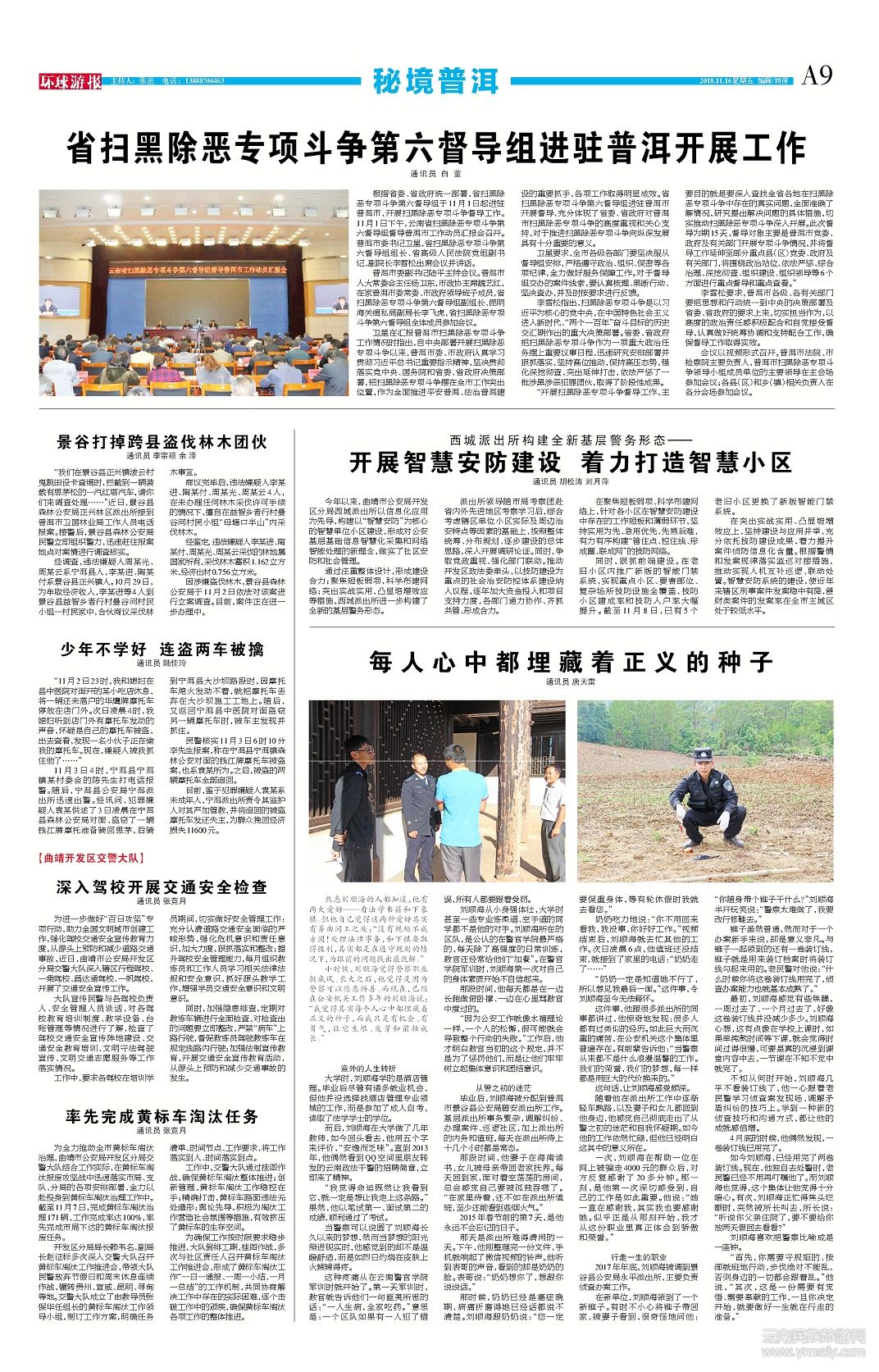 “開展掃黑除惡專項斗爭督導(dǎo)工作,主要目的就是要深入查找全省各地在掃黑除惡專項斗爭中存在的真實問題,全面準(zhǔn)確了解情況,研究提出解決問題的具體措施,切實推動掃黑除惡專項斗爭深入開展。此次督導(dǎo)為期15天,督導(dǎo)對象主要是普洱市黨委、政府及有關(guān)部門開展專項斗爭情況,并將督導(dǎo)工作延伸至部分重點縣(區(qū))黨委、政府及有關(guān)部門,將圍繞政治站位、依法嚴(yán)懲、綜合治理、深挖徹查、組織建設(shè)、組織領(lǐng)導(dǎo)等6個方面進(jìn)行重點督導(dǎo)和重點查看。”