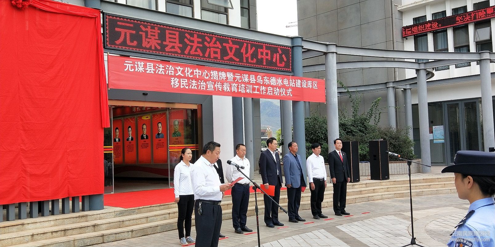2018年11月31日,元謀縣舉行元謀縣法治文化中心揭牌儀式,元謀縣委書記習雁和楚雄州委普法辦副主任、州司法局副局長段興邦在儀式上致辭并為中心揭牌,元謀縣10鄉(xiāng)鎮(zhèn)、83家縣級單位主要領導和干部職工代表、社區(qū)村組干部及居民代表、青少年代表、烏東德水電站建設庫區(qū)移民近300人參加揭牌儀式,有序參觀展廳、廣場、法治文化街,觀看“熱壩說法”警示片,主動接受法治文化教育。