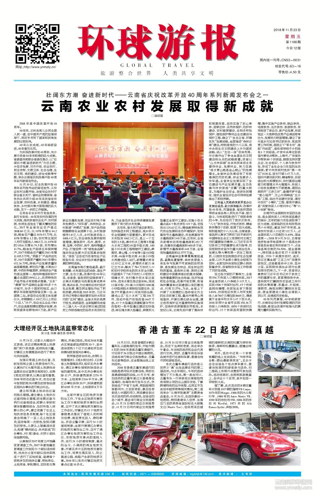40年風(fēng)雨兼程,40年砥礪前行,云南農(nóng)業(yè)農(nóng)村發(fā)展取得的歷史性成就,彰顯出改革開放強(qiáng)大的真理力量和實踐偉力。(文章來源環(huán)球游報2018年11月23日第1166期A1版)