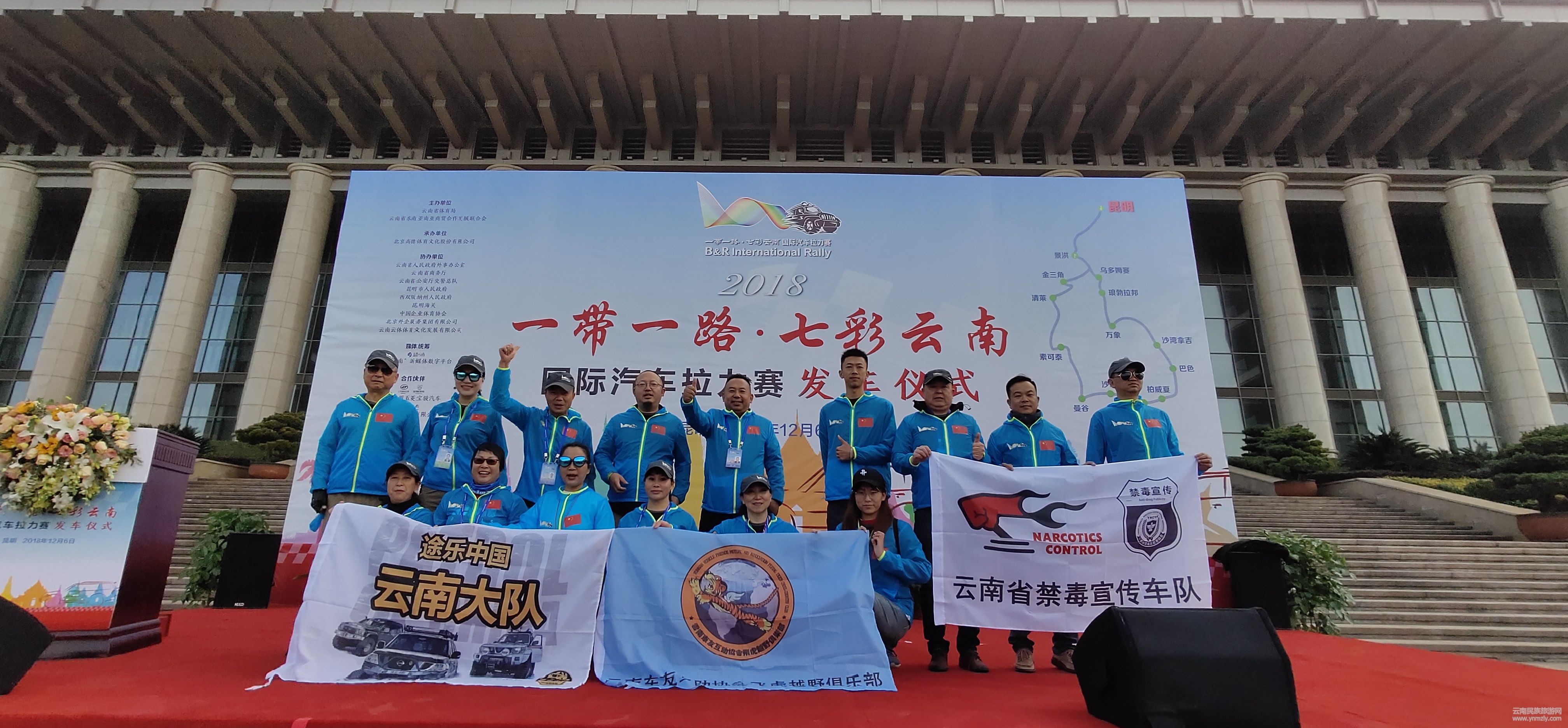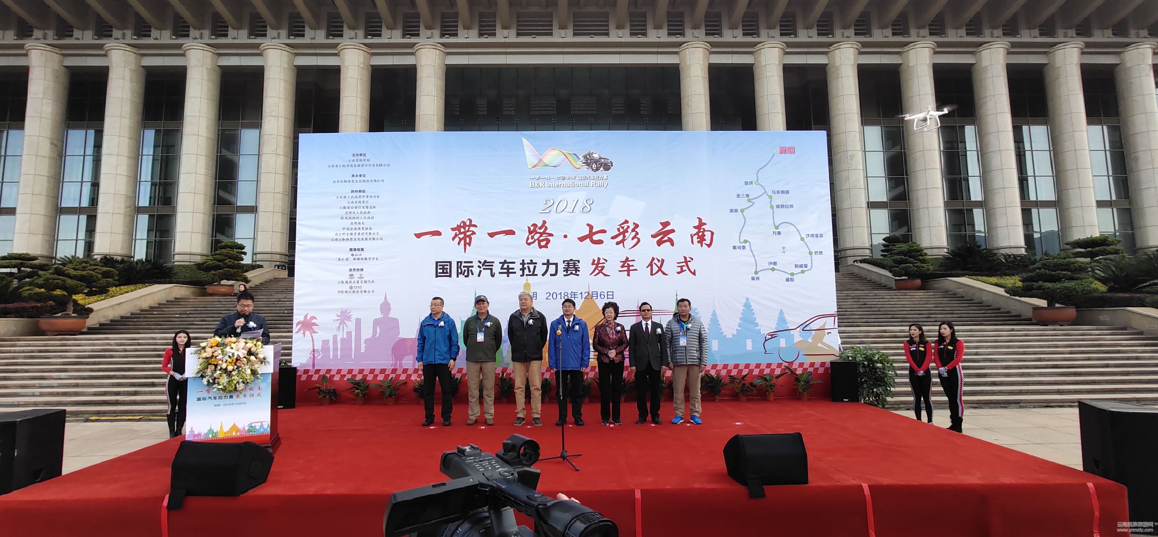 12月6日上午,由云南省體育局、云南省東南亞南亞經(jīng)貿(mào)合作發(fā)展聯(lián)合會(huì)主辦,北京高德體育文化股份有限公司承辦的2018“一帶一路•七彩云南”國(guó)際汽車?yán)惱惏l(fā)車儀式在海埂會(huì)堂舉行。43輛越野車組成的車隊(duì)將從昆明出發(fā)途徑老撾、柬埔寨、泰國(guó)后再返回中國(guó),歷經(jīng)18天總里程約5000余公里,沿途將舉行多場(chǎng)賽事及經(jīng)貿(mào)、文化交流活動(dòng)。