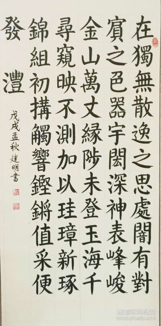 2017年12月又在昆明彌勒寺公園舉辦古稀書法展,獲得了專家和廣大同仁的一致好評。今年6月在參加紀(jì)念劉少奇周恩來彭德懷誕辰120周年海內(nèi)外名家書法作品邀請賽中榮獲金獎(jiǎng)。
