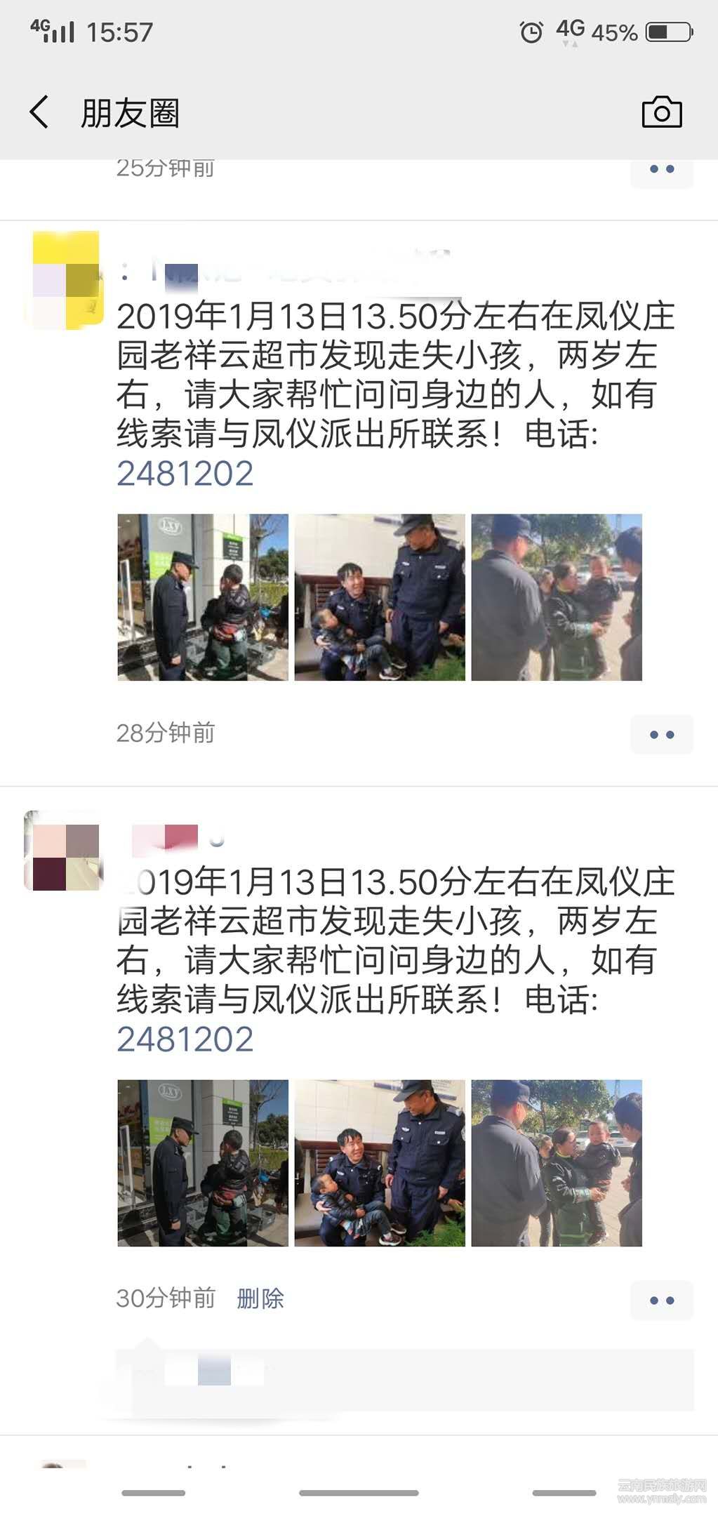 近日,大理市公安局鳳儀派出所民警通過發(fā)布微信朋友圈等多渠道開展工作,成功為一名走失兒童找到家長。