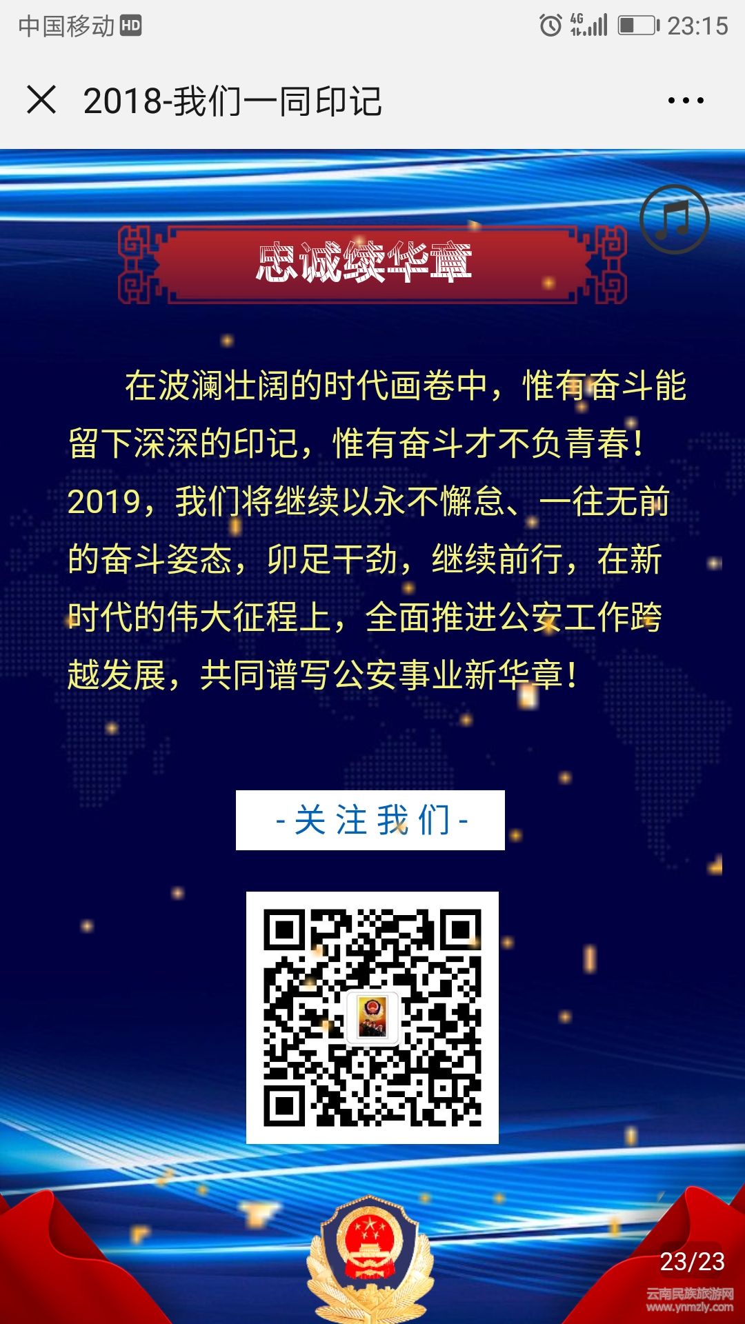 近日,為精心策劃好2018年度回顧性專題宣傳工作,大理市公安局新聞辦民警把新媒體作為公安宣傳優(yōu)先發(fā)展方向,緊扣掃黑除惡、重大任務安保、平安建設攻堅和過硬隊伍建設5個工作重點,強化宣傳策劃,利用業(yè)余時間自學,創(chuàng)新采取制作H5形式,推出圖文聲并茂、感染力強的作品【2018-我們一同印記】;群眾通過手機就可以從多個不同層面認識公安工作,讓公安宣傳工作更加動態(tài)化、可視化,潛移默化,公安形象展示也更加鮮活。