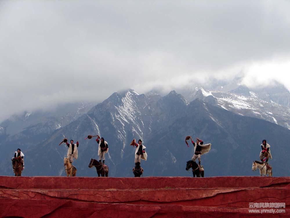 在這神奇廣袤的麗江土地上,在這只可仰視的玉龍雪山下,沒有華麗的背景,沒有絢爛的燈光效果;只有撲面而來的泥土汗水的味道,只有像父輩祖先一樣厚實(shí)的肩膀。這些來自麗江當(dāng)?shù)氐谋硌菡哂米钤膭幼鳌⒆钯|(zhì)樸的歌聲、最滾燙的汗水,與天地共舞,與自然同聲。