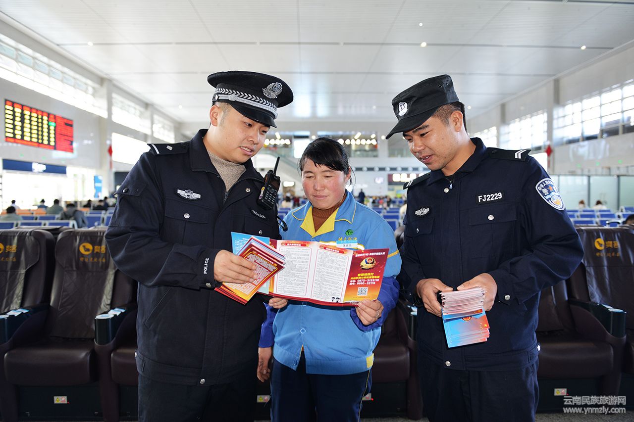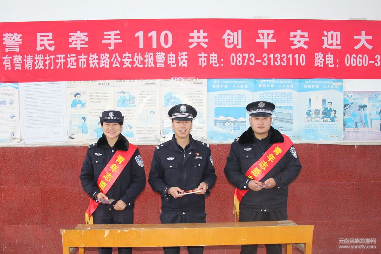 春運(yùn)將至,為提高廣大旅客的安全出行意識(shí),云南開(kāi)遠(yuǎn)鐵路公安處以全國(guó)第33個(gè)“110宣傳日”為契機(jī),在管內(nèi)15個(gè)客運(yùn)車(chē)站、王家營(yíng)西貨場(chǎng)及值乘旅客列車(chē)上,集中開(kāi)展以“警民牽手110,共創(chuàng)平安迎大慶”為主題的宣傳活動(dòng),深入旅客列車(chē)、候車(chē)室、站前廣場(chǎng)向旅客群眾普及“110”報(bào)警求助常識(shí)和安全出行知識(shí)。