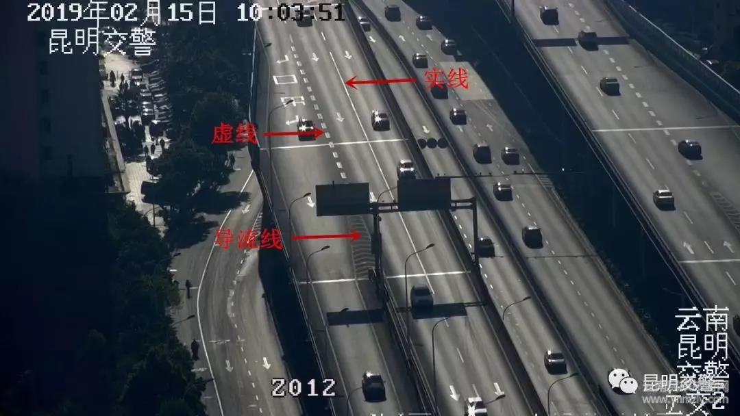 在白色虛線路段可以進(jìn)行越線變道。但很多駕駛?cè)嗽谂R到交叉路口的實(shí)線車道時(shí)才發(fā)現(xiàn)走錯(cuò)了道,這時(shí)想要變道就會(huì)違章被拍處罰。