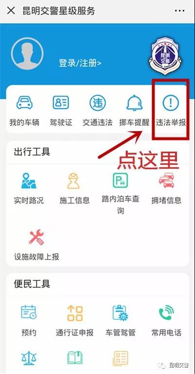 ③點(diǎn)擊首頁“違法舉報”,根據(jù)提示進(jìn)行舉報即可。昆明交警核實(shí)舉報信息后,將對違法者進(jìn)行相應(yīng)處罰并曝光。