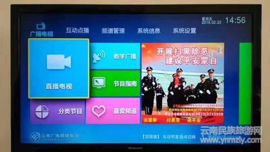 2月21日開始,在云南廣電網(wǎng)絡(luò)集團(tuán)紅河分公司數(shù)字紅河頻道全力開展掃黑除惡宣傳。只要用戶打開電視及機(jī)頂盒,開機(jī)畫面顯示“開展掃黑除惡攻堅戰(zhàn)專項斗爭”、“出重拳、掃黑惡、促平安”、“深挖黑惡勢力保護(hù)傘”字幕,隨后,進(jìn)入主菜單和頻道列表菜單時,兩處都出現(xiàn)設(shè)置有 “開展掃黑除惡、建設(shè)平安蒙自”、“出重拳、掃黑惡、保平安”字幕及舉報電話的掃黑除惡宣傳畫面。讓用戶在第一時間觀看到;利用字幕飛播,每天在黃金時段滾動播出掃黑除惡宣傳標(biāo)語字幕19次;同時,每天在廣告時間播出長達(dá)30秒的蒙自市公安局掃黑除惡公益宣傳片18次(播放時段附后)。據(jù)官方數(shù)據(jù)顯示,“數(shù)字紅河”觀看用戶覆蓋紅河州13縣市45萬余戶約200百余萬人。“數(shù)字紅河”和蒙自電視臺將長期對上述宣傳內(nèi)容進(jìn)行反復(fù)播放。