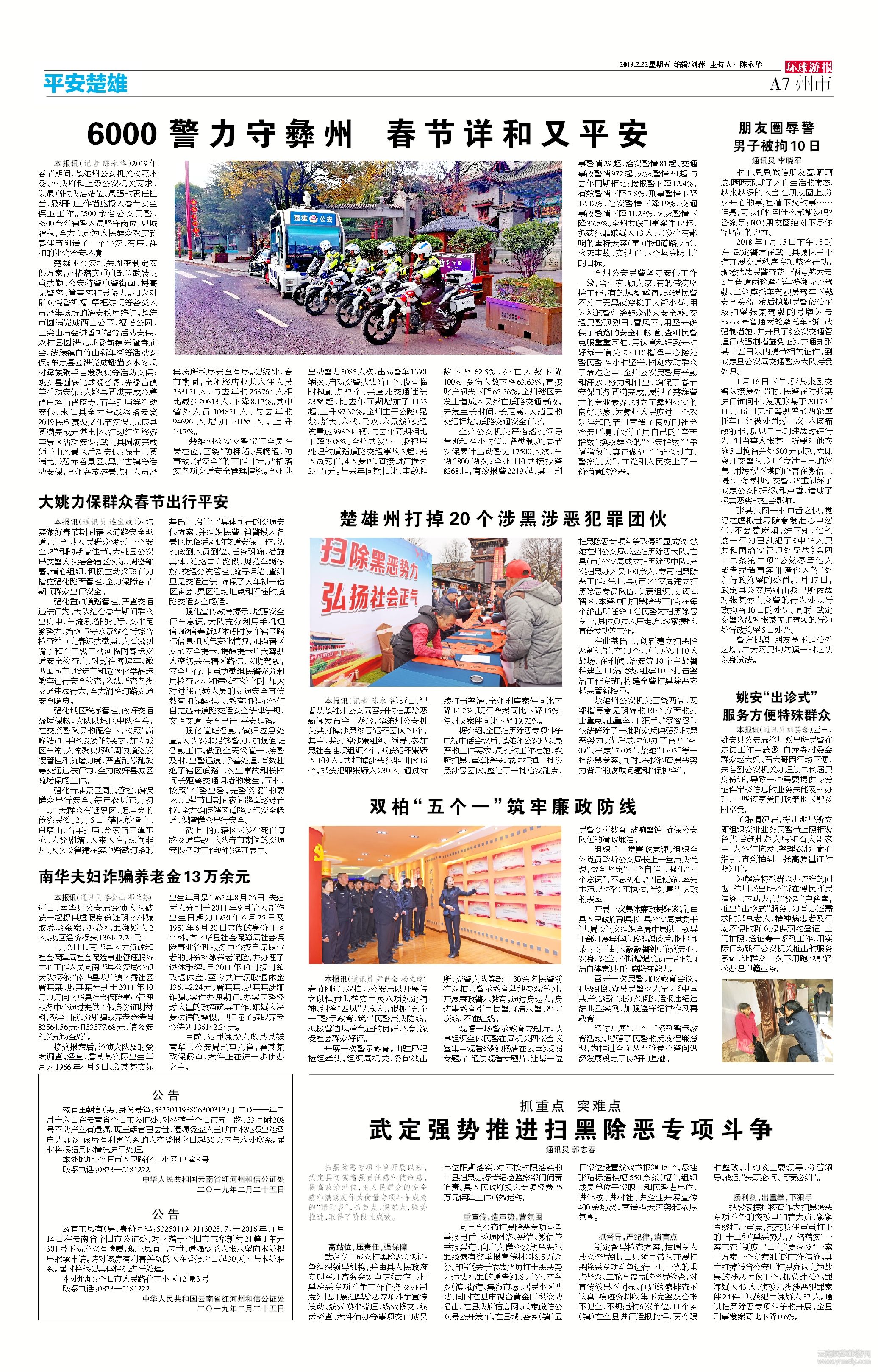 楚雄州公安機(jī)關(guān)圍繞兩高、兩部指導(dǎo)意見(jiàn)明確的10個(gè)方面的打擊重點(diǎn),出重拳、下狠手、“零容忍”,依法鏟除了一批群眾反映強(qiáng)烈的黑惡勢(shì)力。先后成功偵辦了南華“4·09”、牟定“7·05”、楚雄“4·03”等一批涉黑專案。同時(shí),深挖徹查黑惡勢(shì)力背后的腐敗問(wèn)題和“保護(hù)傘”。(文章來(lái)源環(huán)球游報(bào)2019年2月22日第1177期A7版)