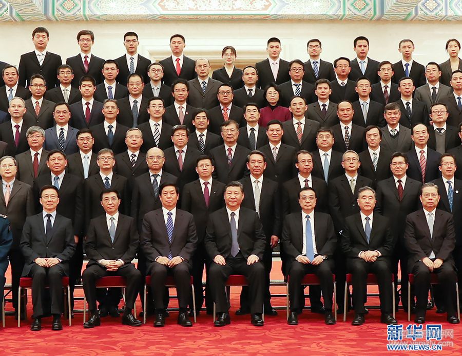 2月20日,黨和國(guó)家領(lǐng)導(dǎo)人習(xí)近平、李克強(qiáng)、栗戰(zhàn)書(shū)、汪洋、王滬寧、趙樂(lè)際、韓正等在北京人民大會(huì)堂會(huì)見(jiàn)探月工程嫦娥四號(hào)任務(wù)參研參試人員代表。 新華社記者鞠鵬攝