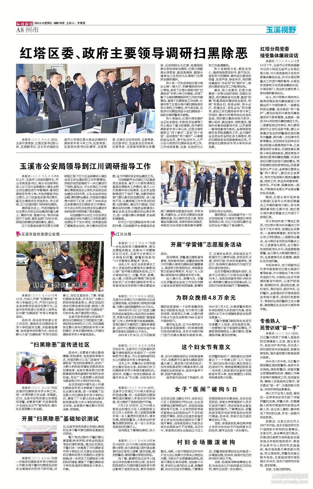 最后,張小良要求,紅塔分局要進一步強化組織領導,加強隊伍建設,將掃黑除惡與反腐、基層“拍蠅”和基層組織建設結合起來,按照“有黑必掃、有惡必除、有傘必打、有腐必反、有亂必治”的總要求,緊扣三年掃黑除惡專項斗爭工作目標,集中打好案件偵辦這場攻堅戰(zhàn),同時要以整改迎檢為抓手,精心組織、高位推動、細抓落實,圍繞中央督導組督導內容,以市委第一督導組督導為契機,全面細致地做好各項檢查整改工作,全力維護全區(qū)政治安全和社會大局穩(wěn)定,抓好掃黑除惡各項措施落地見效,不斷推動掃黑除惡專項斗爭向縱深發(fā)展。(文章來源環(huán)球游報2019年3月15日第1180期A8版)
