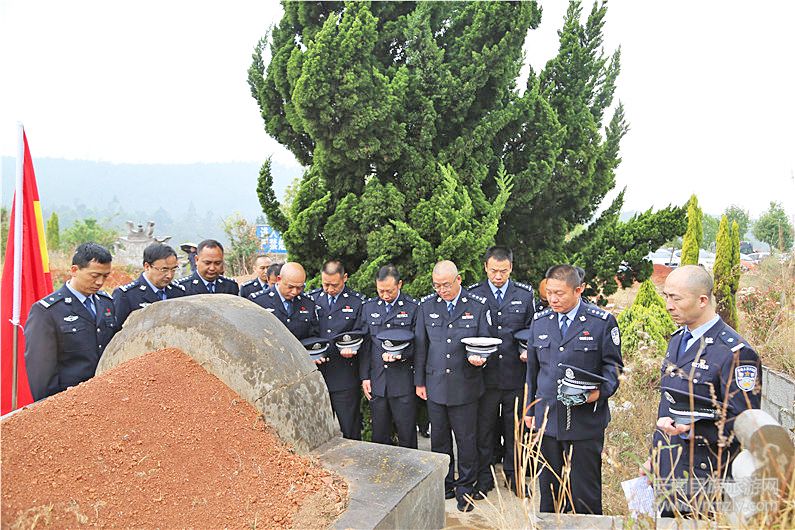 在普廟大山楊永祥烈士墓前,分局全體民警冒著小雨整齊列隊(duì),警容嚴(yán)整,懷著十分崇敬的心情向楊永祥烈士墓鞠躬致敬、脫帽默哀3分鐘,對(duì)楊永祥烈士舍生取義、以身護(hù)法的大無(wú)畏精神表達(dá)深切的緬懷之情。政治工作辦公室民警代表全局民警和警輔致辭,表達(dá)了對(duì)烈士的深切悼念,號(hào)召全局民警和警輔人員向楊永祥烈士學(xué)習(xí),學(xué)習(xí)他對(duì)黨和人民無(wú)限忠誠(chéng)、學(xué)習(xí)他愛(ài)崗敬業(yè)、恪盡職守、無(wú)私奉獻(xiàn)的高尚品德,學(xué)習(xí)他甘于奉獻(xiàn)、勇于犧牲的精神,切實(shí)擔(dān)負(fù)起保一方平安的責(zé)任,為紅塔區(qū)經(jīng)濟(jì)社會(huì)發(fā)展提供長(zhǎng)期和諧穩(wěn)定的社會(huì)環(huán)境而奮斗!