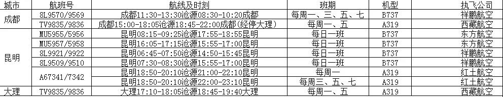 滄源佤山機(jī)場(chǎng)進(jìn)出港航班時(shí)刻表