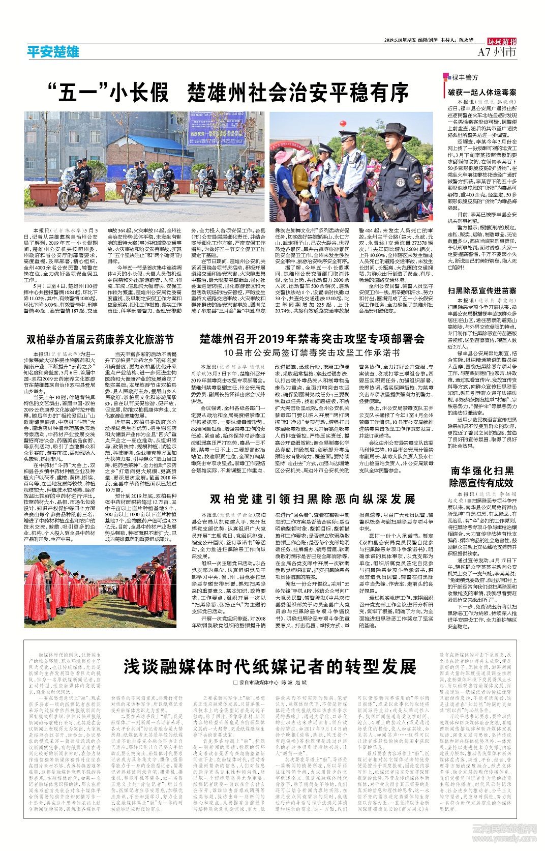 全州公安民警、輔警人員堅(jiān)守安保工作一線(xiàn),用辛勤和汗水、努力和付出,圓滿(mǎn)完成了五一小長(zhǎng)假安保工作任務(wù),全力確保了楚雄州社會(huì)治安和諧穩(wěn)定。(文章來(lái)源環(huán)球游報(bào)2019年5月10日第1186期A(yíng)7版)