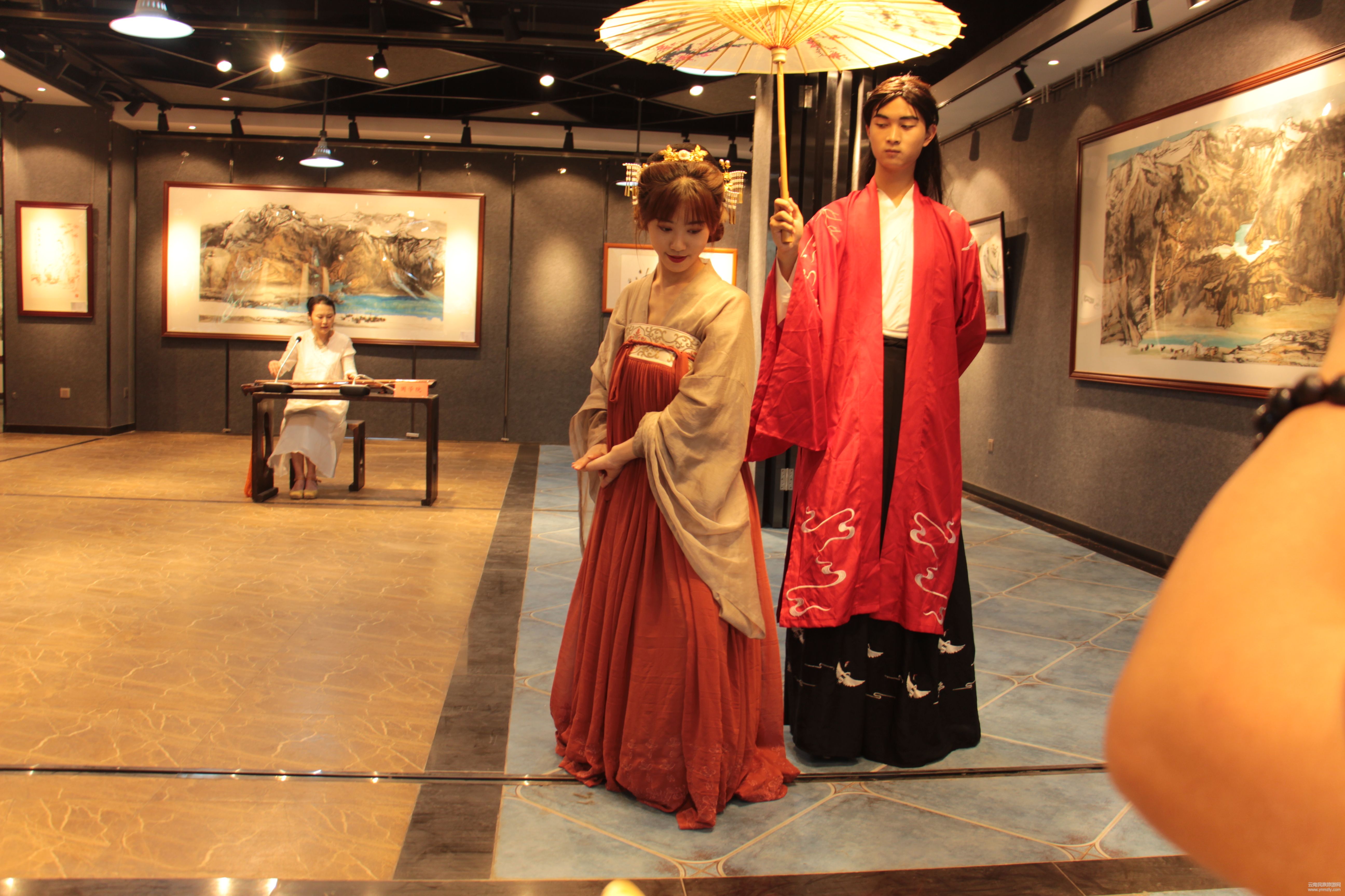 在現(xiàn)場(chǎng)國學(xué)院成員彈奏了音色優(yōu)美的古箏曲,兩個(gè)穿著漢民族的傳統(tǒng)服飾猶如不食人間煙火的仙女和仙子緩緩的走向現(xiàn)場(chǎng)的嘉賓,展示我國華夏的璀璨文明。