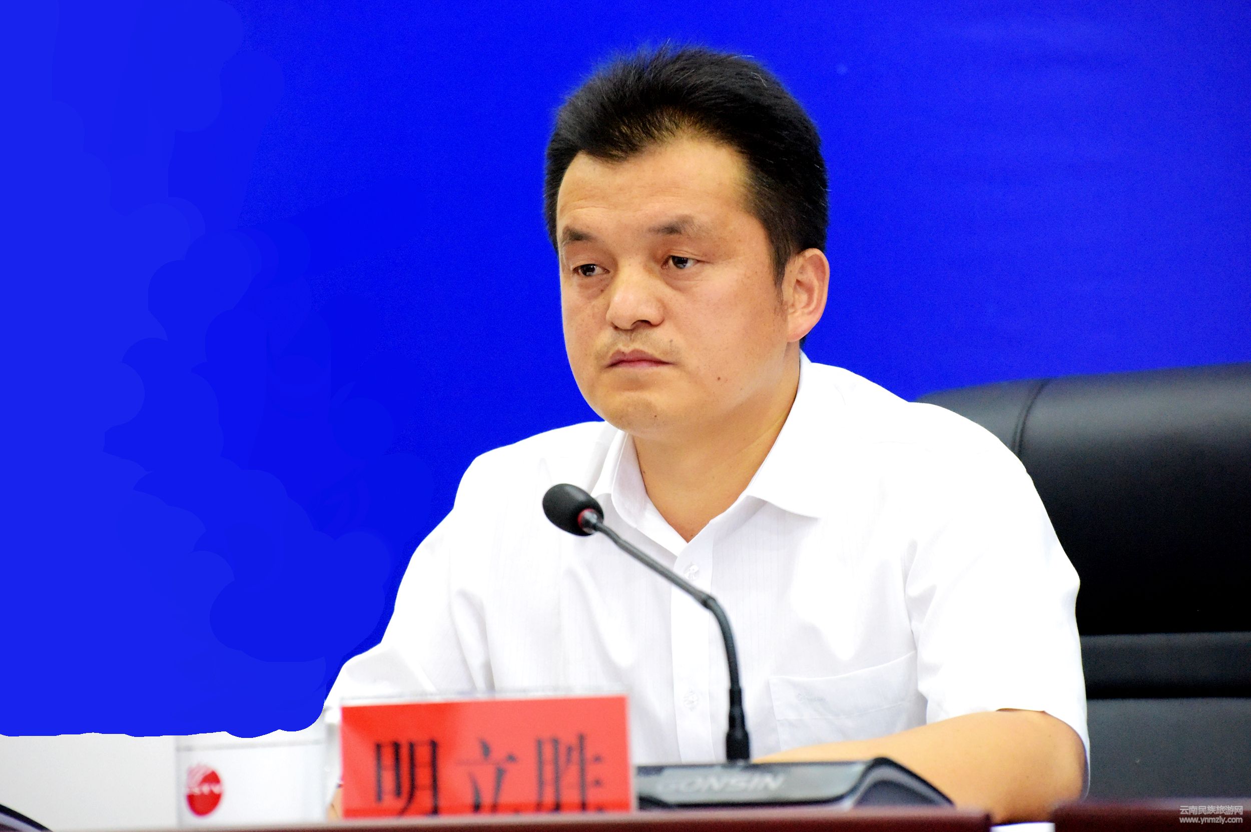 ▲保山市人民政府新聞辦專(zhuān)職副主任明立勝主持新聞發(fā)布會(huì)