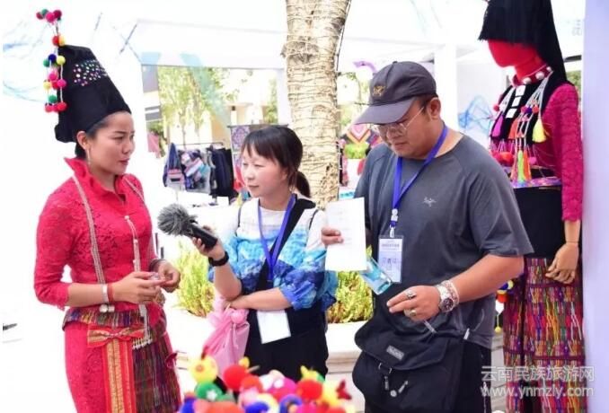 在此次活動中,梁河縣娥昌民族服飾有限公司代表德宏五個世居少數民族參加,集中展示阿昌族的服飾文化。展臺內鮮艷亮麗的服裝飾品別致而獨具特色,引來許多游客拍照了解,一些游客非常喜歡精致漂亮的阿昌服飾,親自體驗阿昌族服飾。有的第一次聽說“阿昌族”,有的是阿昌族的“老朋友”,無論有多少游客,尹春煥都耐心細致地介紹著,她說:“為了參加這次活動,我們足足準備了兩個多月,雖然很累,但我們會一直保持微笑和熱情,把阿昌族最漂亮最具代表性的服飾展示出來,感到很激動,也很自豪。”