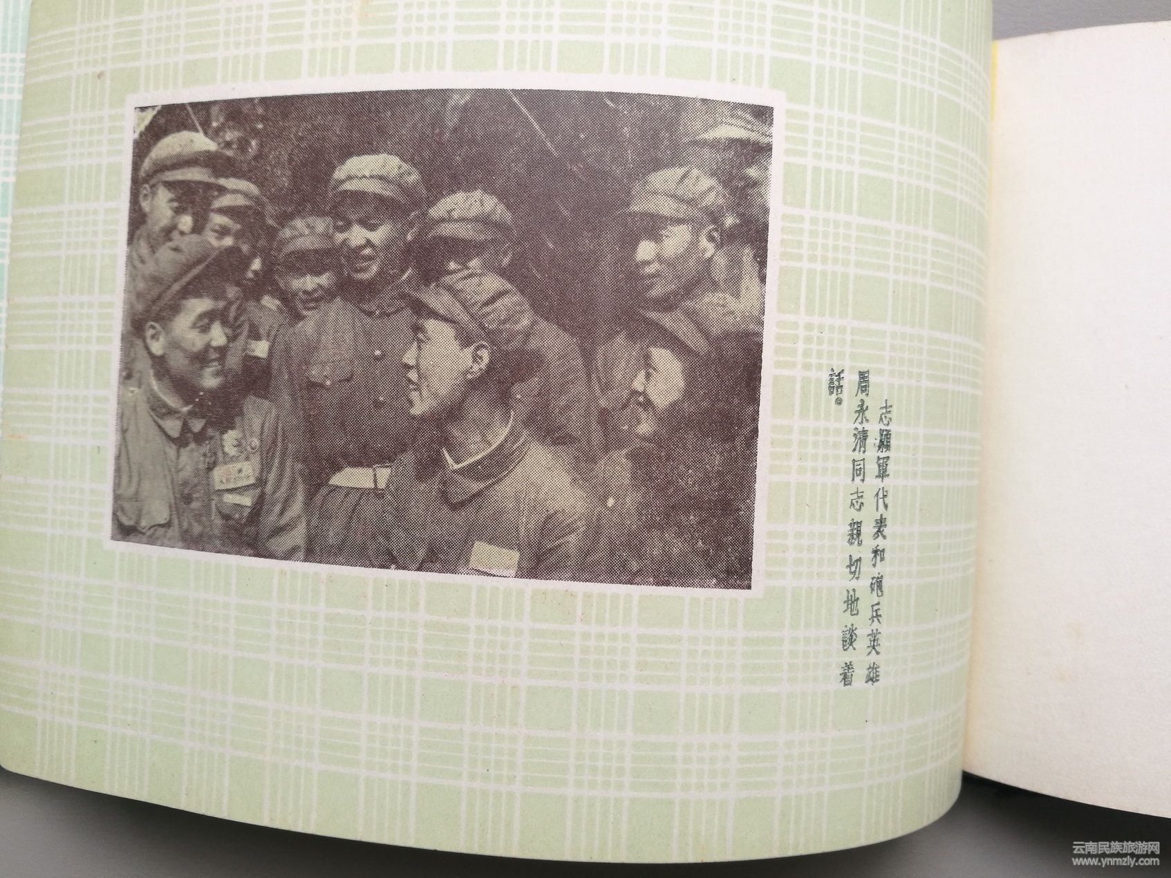 我收藏的這本《紀(jì)念冊(cè)》,是云南軍區(qū)為全國(guó)人民慰問(wèn)人民解放軍代表團(tuán)西南總分團(tuán)的慰問(wèn)活動(dòng)制作的紀(jì)念冊(cè)。紫絨布面,彩色卡紙,印刷精美。冊(cè)內(nèi)收集了幾十幅全國(guó)人民慰問(wèn)解放軍代表團(tuán)在云南的慰問(wèn)活動(dòng)的工作照片,是云南歷史文化的珍貴史料。圖片包括云南軍區(qū)政委謝富治赴昆明站歡迎代表團(tuán)代表同志;
