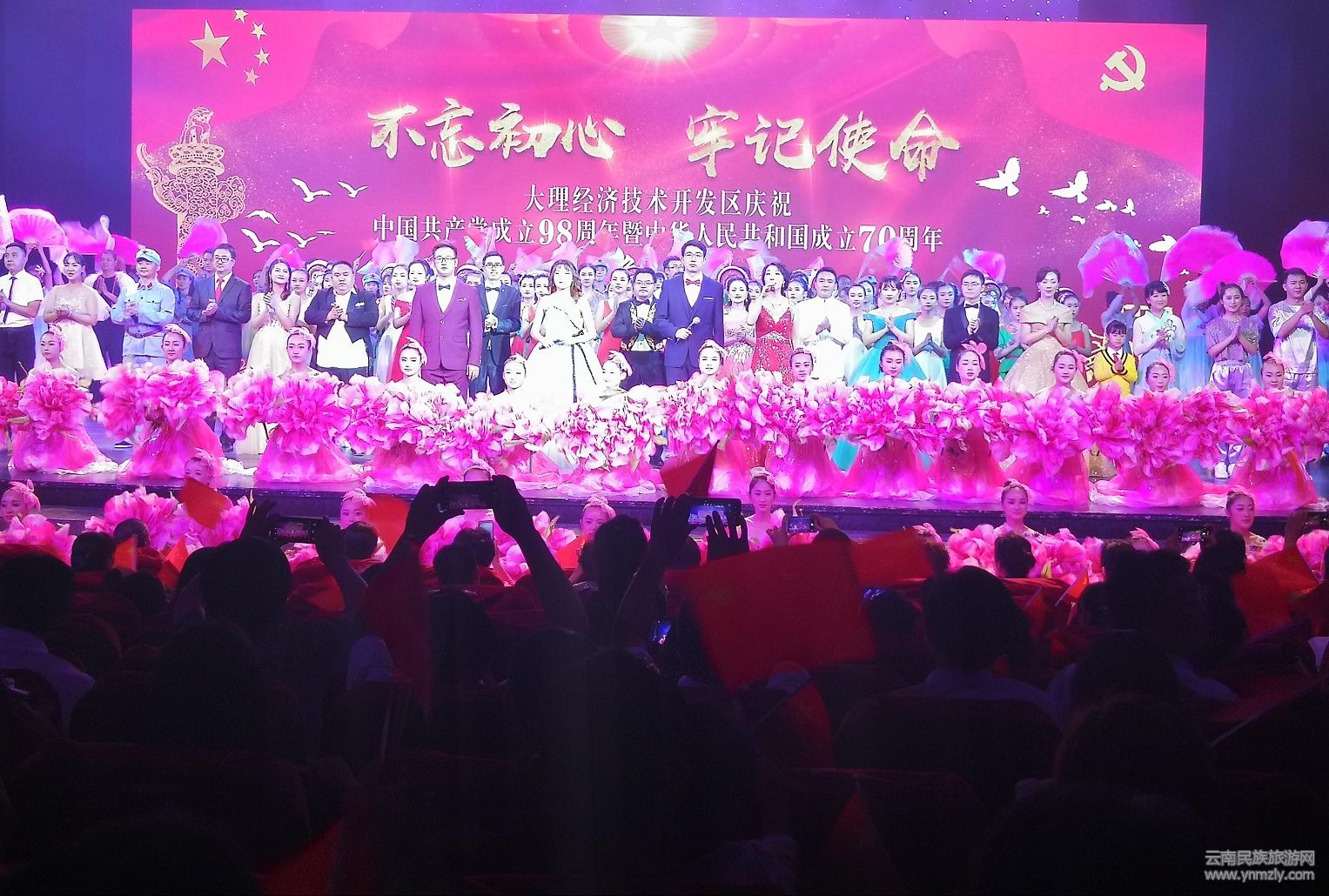 7月2日晚,大理經(jīng)開區(qū)黨工委、管委會在蝴蝶之夢藝術(shù)劇場舉辦慶祝中國共產(chǎn)黨成立98周年暨中華人民共和國成立70周年“不忘初心 牢記使命”主題晚會。晚會熱情歌頌了黨、歌頌了祖國、歌頌了新時代,展示了經(jīng)開區(qū)不忘開發(fā)建設(shè)初心,牢記加快發(fā)展使命的精神風貌。