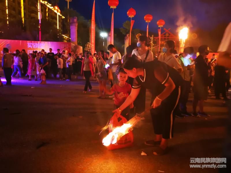 緊接著灑火狂歡時(shí)刻來臨,越來越多的小火把也被點(diǎn)燃,大家手持火把,不斷舞動(dòng),一把把松香撒向熊熊燃燒的火把,向過往的親人、朋友撒上一把燃燒的松香,送上的是深深的祝福。大街小巷,星火點(diǎn)點(diǎn)。歡樂的人群置身在火的海洋、火的世界,盡情享受火把節(jié)帶來的歡暢和激情。