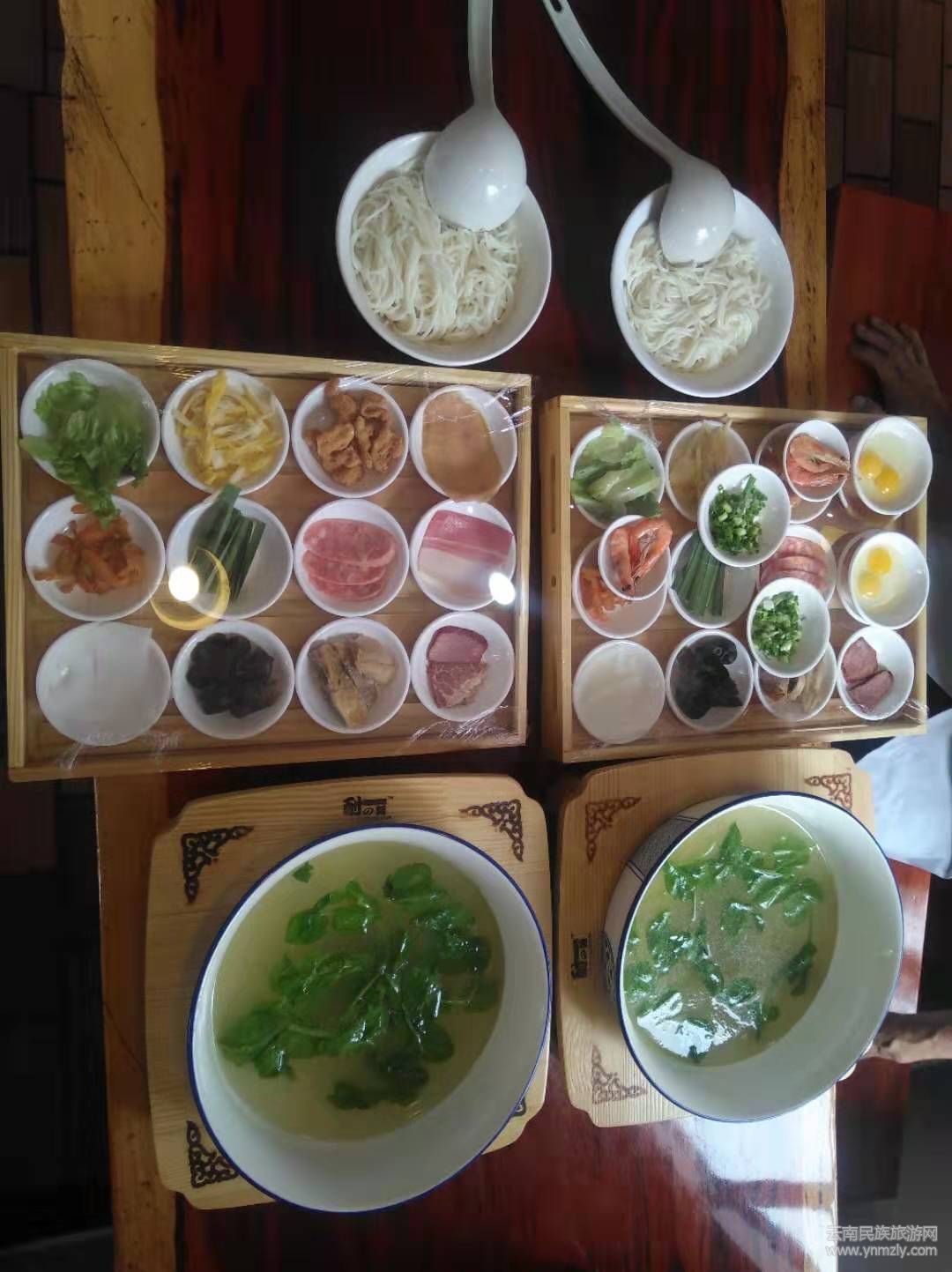 有趣的是,那時昆明最有名的過橋米線似乎都集中在距順城街、東寺街、沿河路不遠的幾條鋪著大石條的街面上,如寶善街的福華園、就以“過橋米線”為主、并輔以“什錦涼米線”、“脆哨米線”。而離其不遠的建新園也是“過橋米線、脆肉米線”,不過,最有名的過橋米線店卻是“鶴香樓”,記得每月的12日是父親領工資的時候,父親會領著我抬上家中的大缽鍋,花8角錢去買套過橋米線,順便打一大鍋的湯,然后再去南通街口換一斤米線,一大家子圍在一起吃過橋米線。